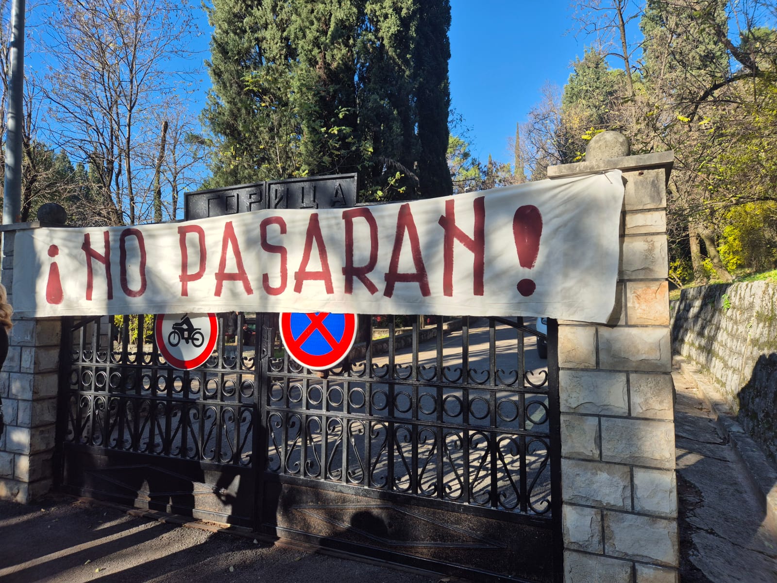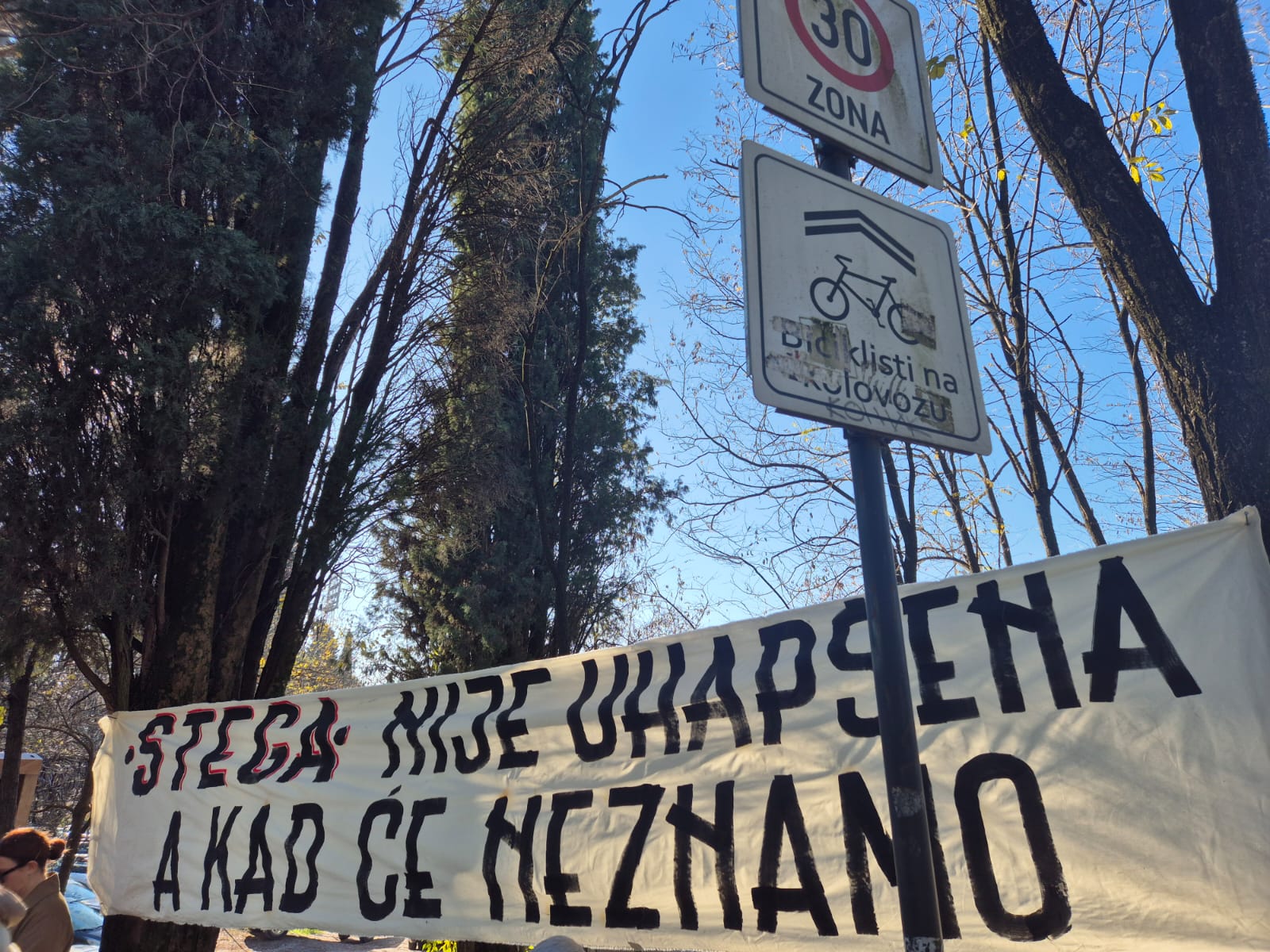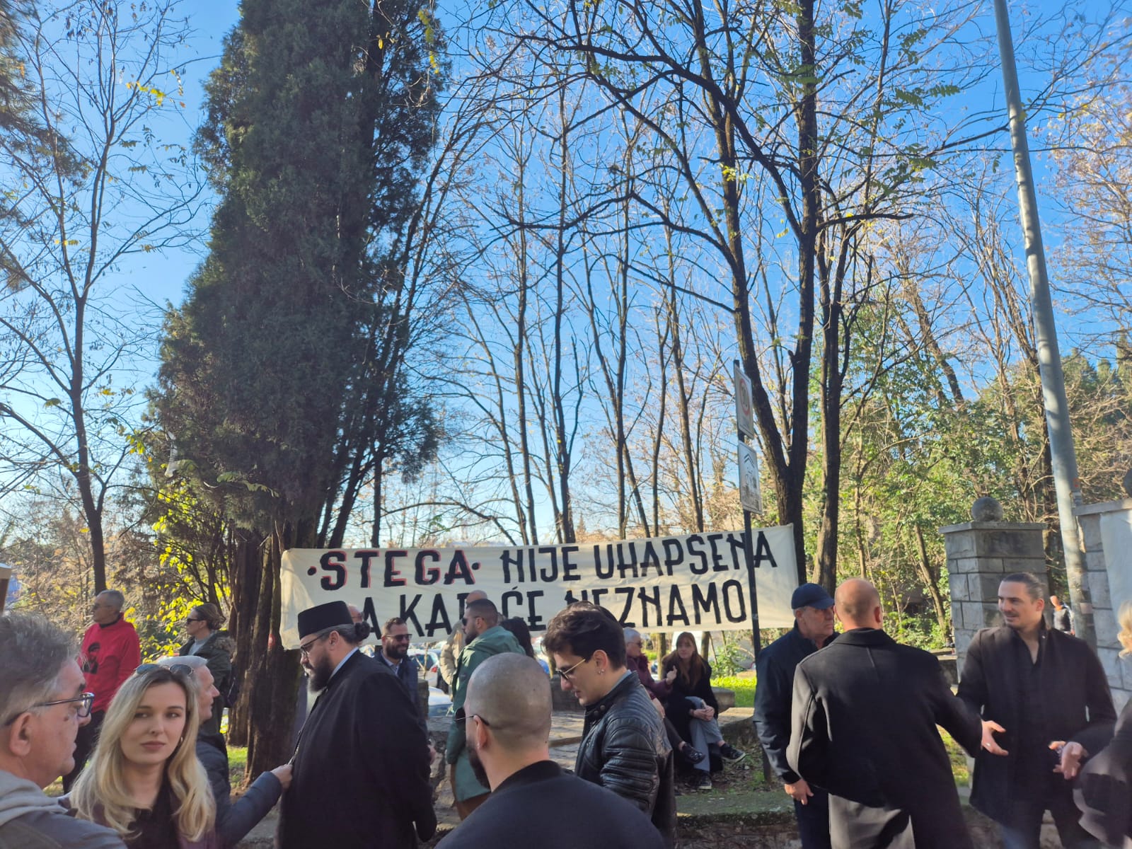 Na glavnoj kapiji na ulazu na Goricu bile su okačene poruke “STEGA nije uhapšena, a kad će ne znamo” i “No pasaran”.