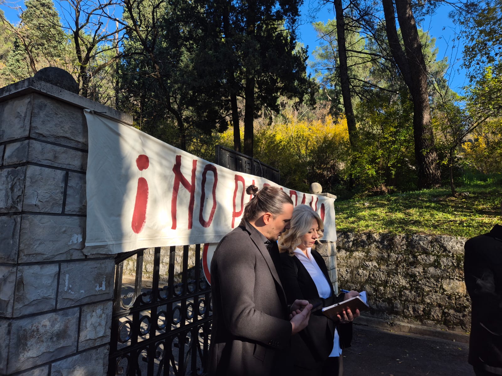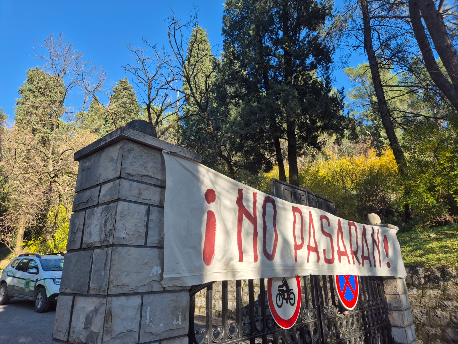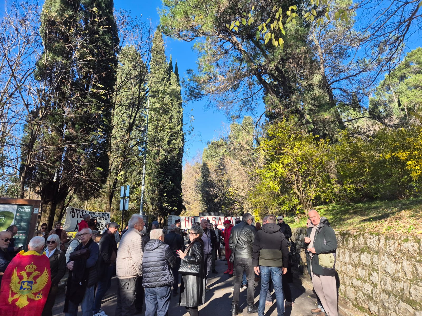 Na glavnoj kapiji na ulazu na Goricu bile su okačene poruke “STEGA nije uhapšena, a kad će ne znamo” i “No pasaran”.