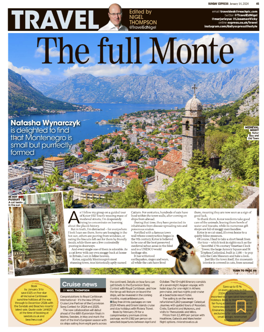 Osim ove, reportaže o Crnoj Gori su objavljene i u čuvenim dnevnim novinama: Sunday Mirror, Daily Mirror, Daily Express i Daily Star, privlačeći pažnju čitalaca širom Velike Britanije i Irske. Novinarka Natasha Wynarczyk u svojim reportažama “The Full Monte” otkriva da je Crna Gora mala, ali savršeno pozicionirana zemlja koja ima mnogo da ponudi.