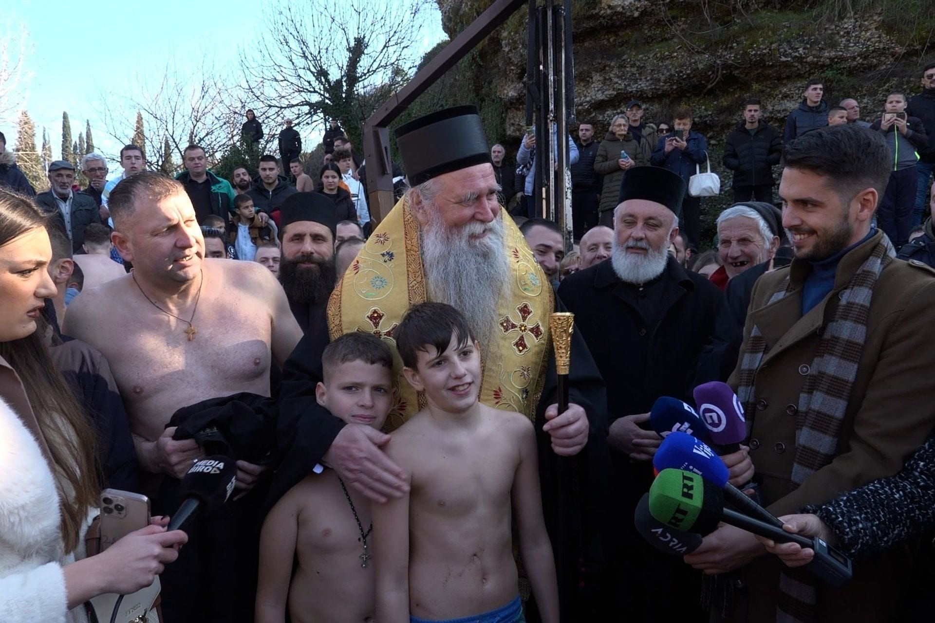 Sve to odvijalo se u prisustvu mitropolita SPC Joanikija, kojem očigledno nije smetao takav melos dok se plivalo za časni krst.