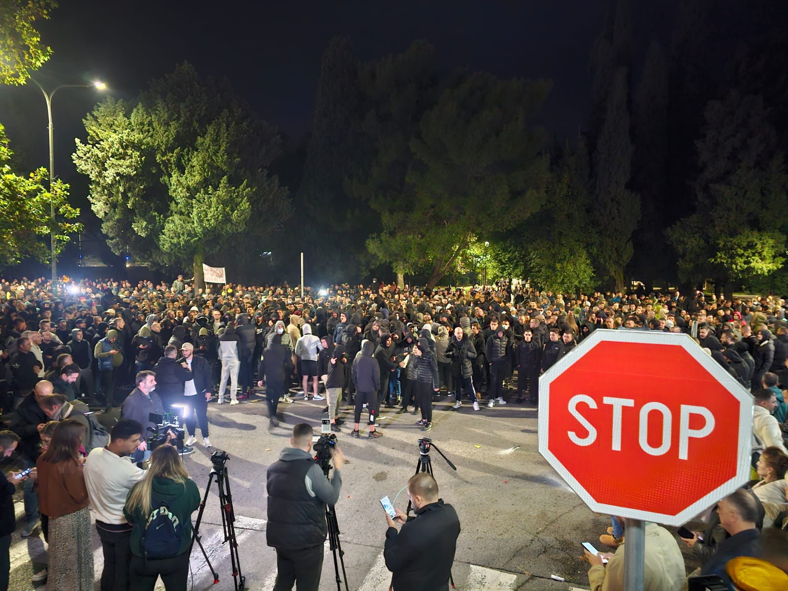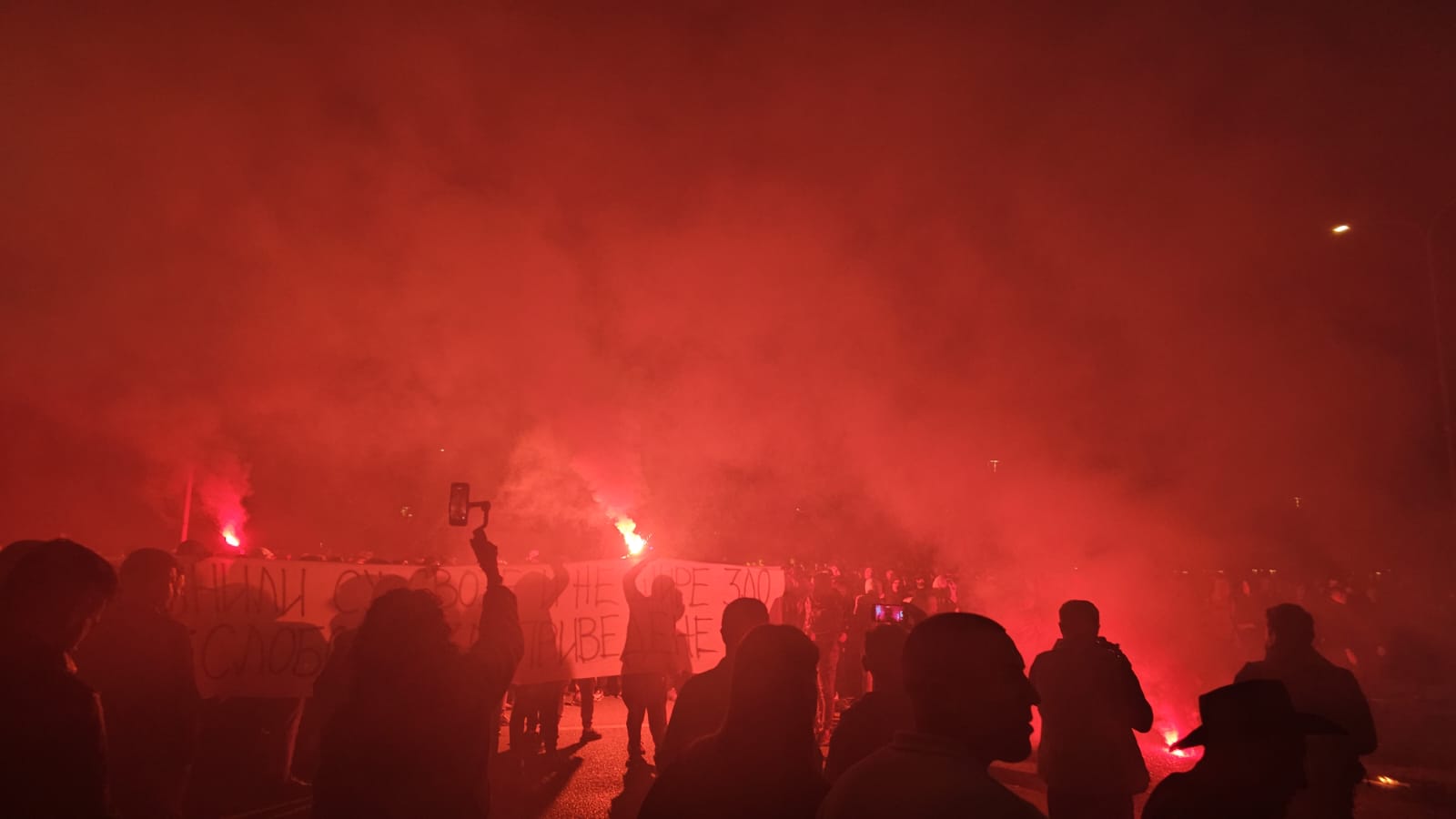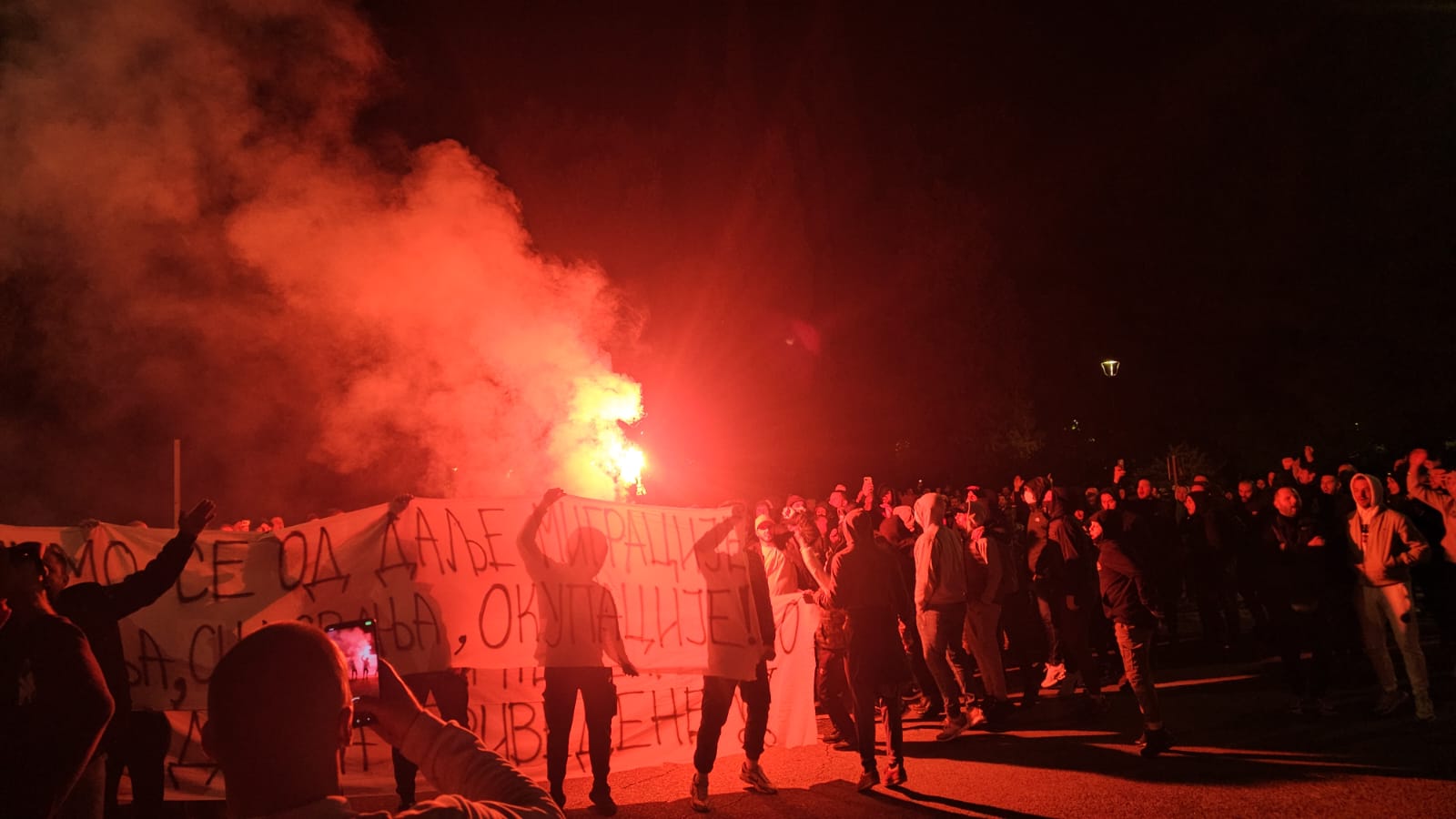 Na putu ka Vladi okupljeni su skandirali “Turci napolje”, a kako se može vidjeti zapalili su pirotehniku, dok su pojedini istakli trobojke.