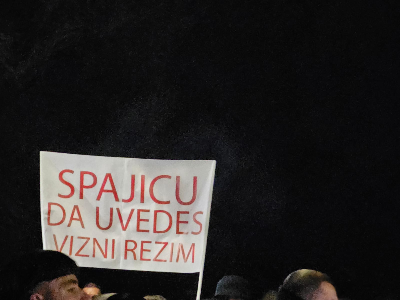 U jednom trenutku okupljeni su raširili transparent na kojem piše: “Kupuju dolaze uz povlasite svake i za sedam uboda tjelesne lake???