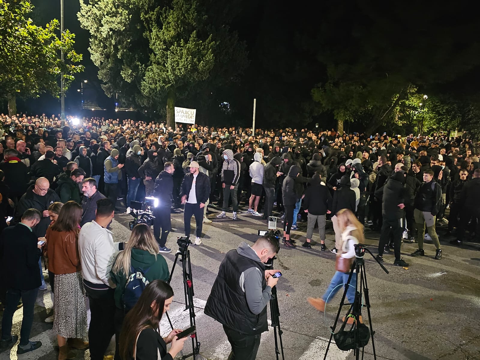 Kako javlja reporterka portala Standard, na protestu je primijećeno dosta mlađih muškaraca sa fantomkama, maskama i kapama, a na protestu su pristune i žene sa malom djecom