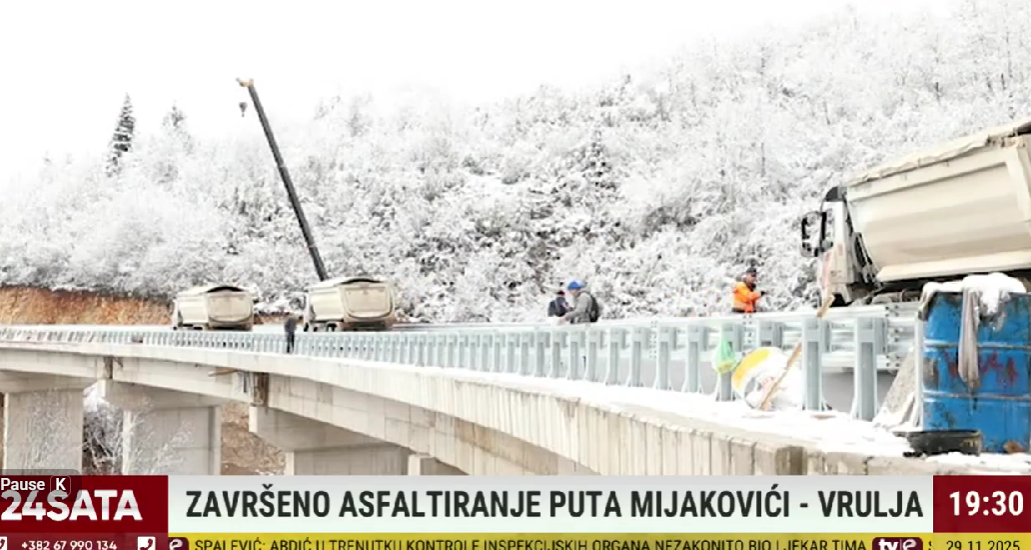 Na putnom pravcu Mijakovići-Vrulja, koji je trenutno u fazi rekonstrukcije, završeni su radovi na konstrukcijama mostova I i II, kao i svi asfalterski radovi na kompletnoj dionici.