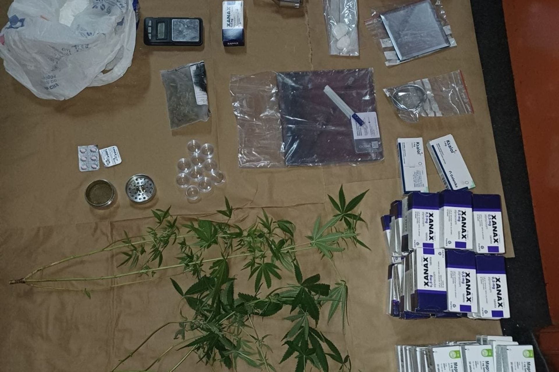 Takođe, pronađeno je 2.792 komada tableta sa liste opojnih droga (Xanax, Xalolm, Maprazax), oko dva kilograma nepoznate praškaste supstance roze boje, oko 410 grama nepoznate praškaste supstance bijele boje, dvije vage za precizno mjerenje, mlin za usitnjavanje tableta i kristala opojne droge, kao i dvije stabljike biljke marihuana visine 80 i 63 cm, koje su, kako se sumnja, osumnjičeni uzgajali u stanu.
