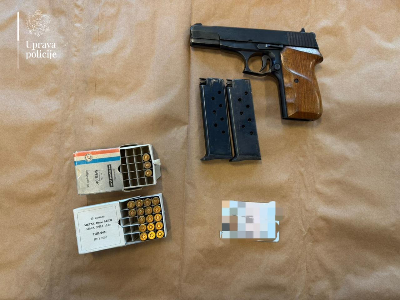 “Takođe, pretresom stana i drugih prostorija koje u Tuzima koriste E.Đ. i K.Đ., pronađeni su pištolj marke „CZ Vzor 70“ i 57 komada municije različite vrste i kalibra, kao i određeni predmeti sa evidencijama od značaja za dalji tok postupka”, dodaje policija.