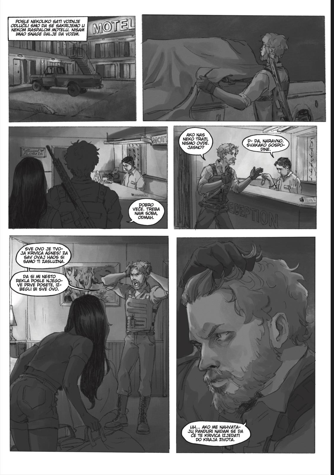 ,,Scena je uzbudljiva. Nema nas mnogo, ali nema nešto mnogo strip-autora generalno. Zaista smo mala grupa ljudi i volim da vjerujem da se sjajno slažemo međusobno. Ja se osjećam zbrinuto i prihvaćeno od svojih kolega/inica koji me uporno bodre i ohrabruju da radim dalje i stvaram više”, opisuje.