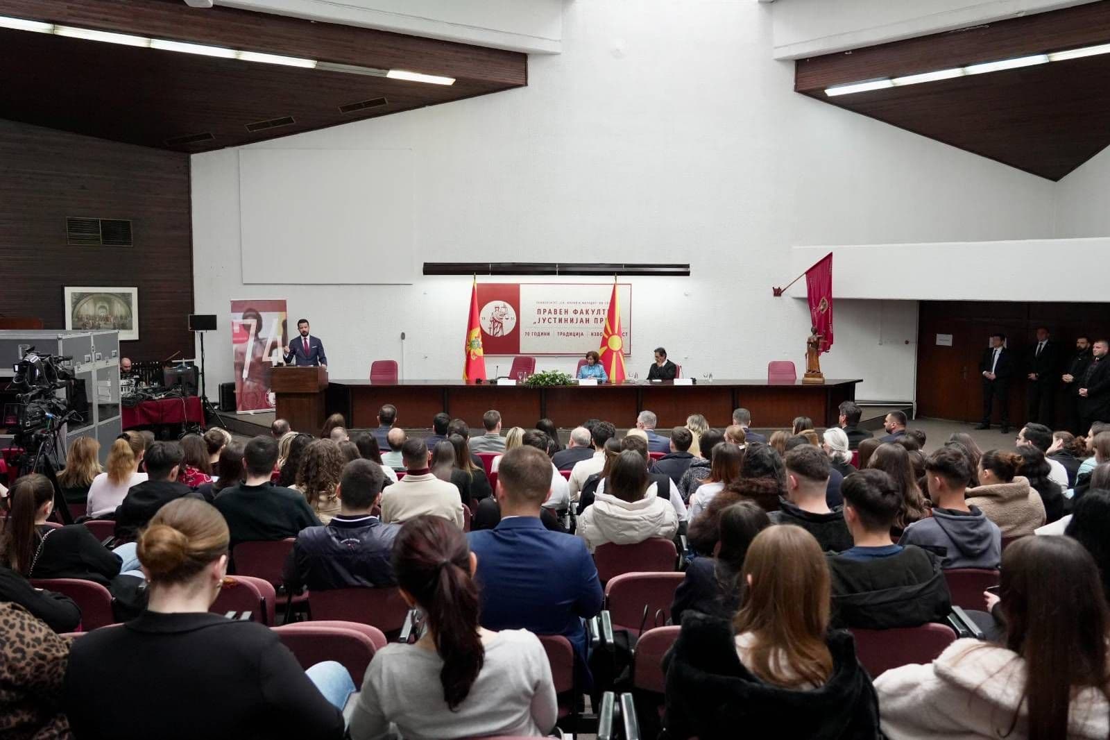 Milatović, navode iz njegovog kabineta, govori na Pravnom fakultetu Univerziteta Sv. Kiril i Metodij u Skoplju, zajedno sa predsjednicom te države Gordanom Siljanovskom-Davkovom.
