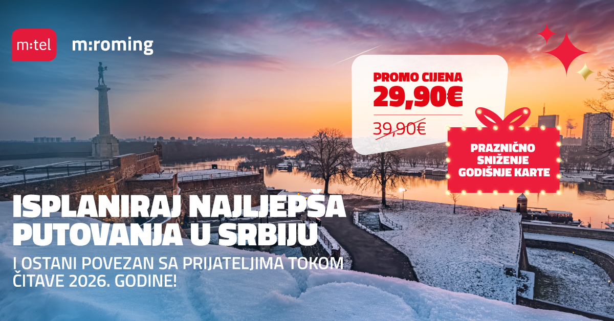 Kako bi svojim korisnicima omogućila neograničenu komunikaciju dok borave u Srbiji, kompanija MTEL je od pripremila specijalno sniženje za godišnji m:roming Prva klasa tiket, koji je u promo periodu od 5.12.2025. do 31.01.2026. godine, dostupan po cijeni od samo 29,9 eura.