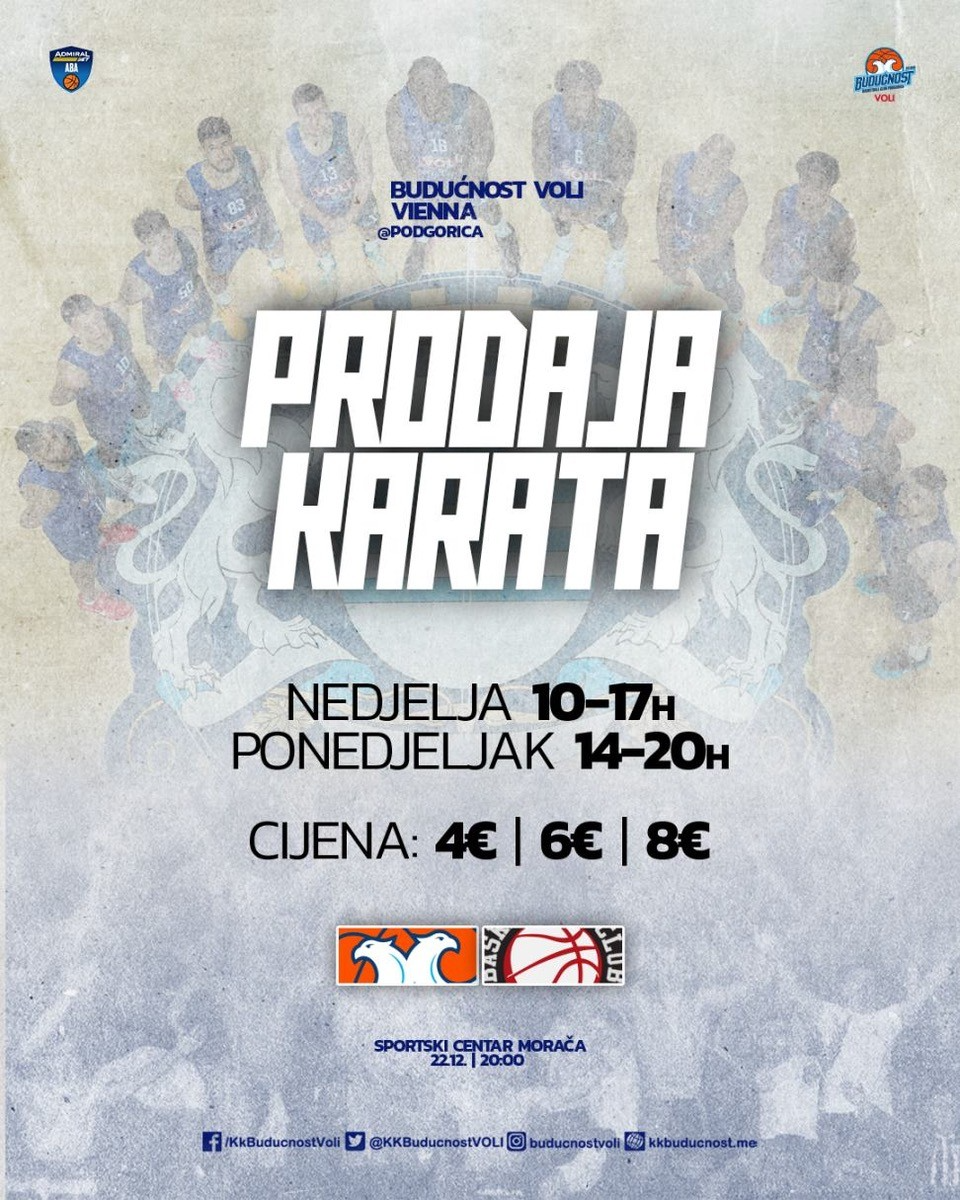 Košarkaši Budućnost Volija dočekuju Beč u 11. kolu regionalne AdmiralBet ABA lige u ponedjeljak, 22. decembra, sa početkom u 20 časova.