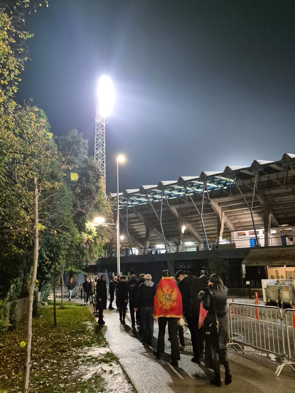 Meč počinje u 20:45, a prve scene sa terena oko stadiona pokazuju da će Crna Gora večeras imati snažnu i glasnu podršku.