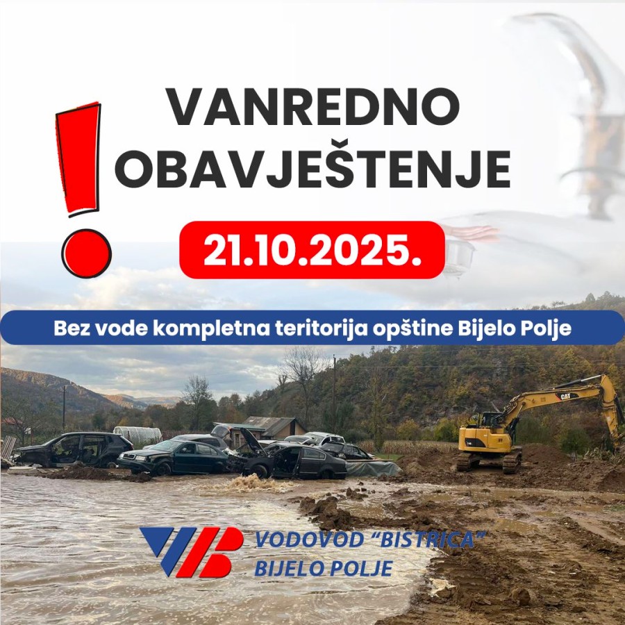 ••Kompletna teritorija opštine Bijelo Polje bez vode zbog oštećenja glavnog distributivnog cjevovoda
