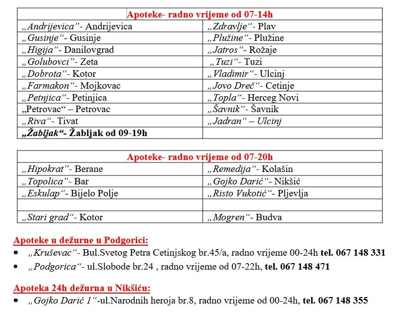 Apoteke Montefarma dežuraće tokom praznika kulture – Njegoševog dana.