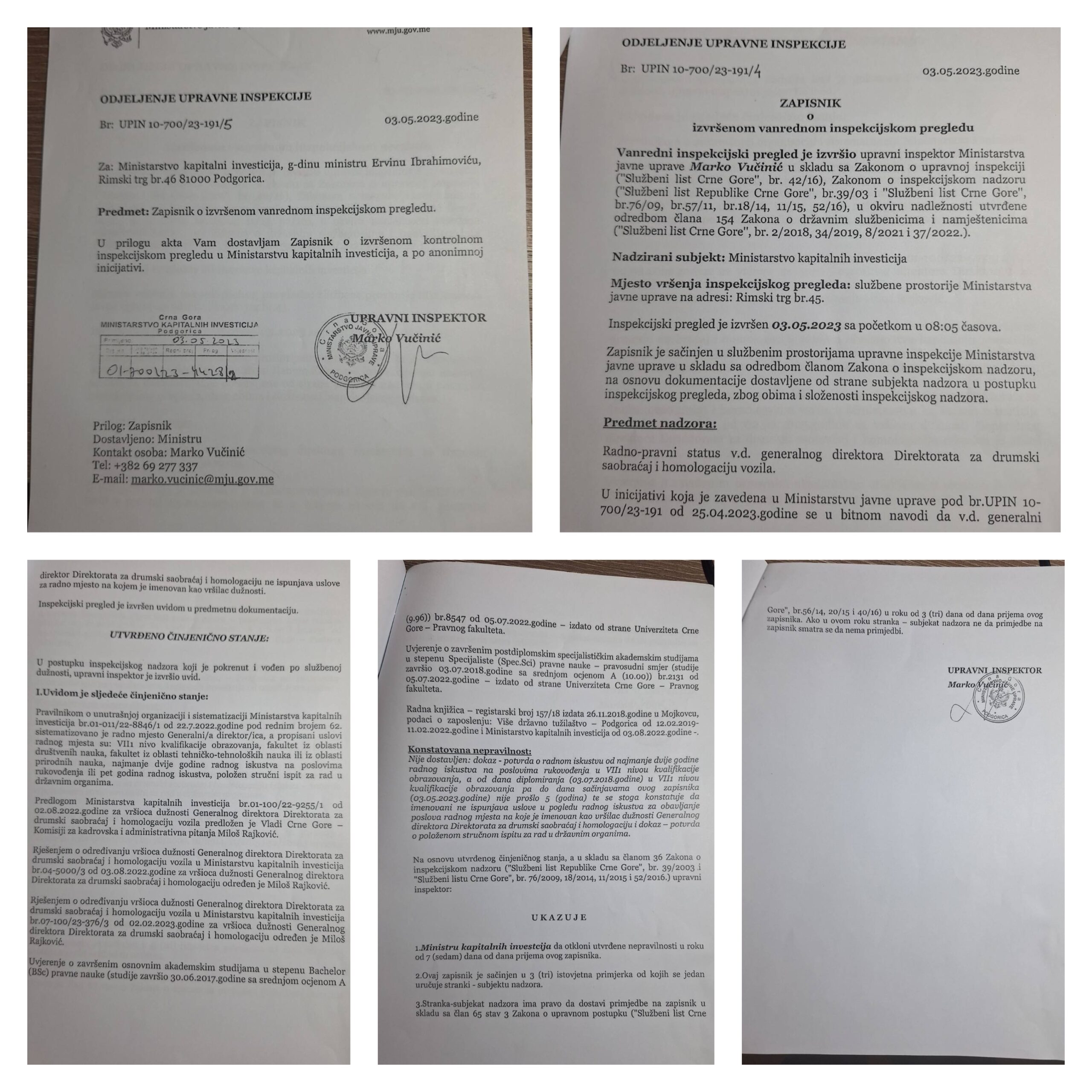 Dokument Ministarstva javne uprave, Odjeljenja upravne inspekcije, pod brojem UPIN 10-700/23-191/4, od 3. maja 2023. godine, pokazuje da je upravni inspektor Marko Vučinić, nakon vanrednog inspekcijskog pregleda u Ministarstvu kapitalnih investicija, konstatovao nepravilnost u vezi sa tadašnjim imenovanjem Rajkovića za v. d. generalnog direktora Direktorata za drumski saobraćaj i homologaciju vozila.U zapisniku, u dijelu označenom kao “Konstatovana nepravilnost”, navodi se da nije dostavljen dokaz da Rajković ima najmanje dvije godine radnog iskustva na poslovima rukovođenja u VII1 nivou kvalifikacije obrazovanja, niti pet godina radnog iskustva od dana diplomiranja u toj kvalifikaciji. Inspektor je pritom konstatovao da od dana diplomiranja 3. jula 2018. godine do dana sačinjavanja zapisnika 3. maja 2023. godine nije proteklo pet godina, te da imenovani “ne ispunjava uslove u pogledu radnog iskustva” za radno mjesto na koje je bio postavljen kao vršilac dužnosti.