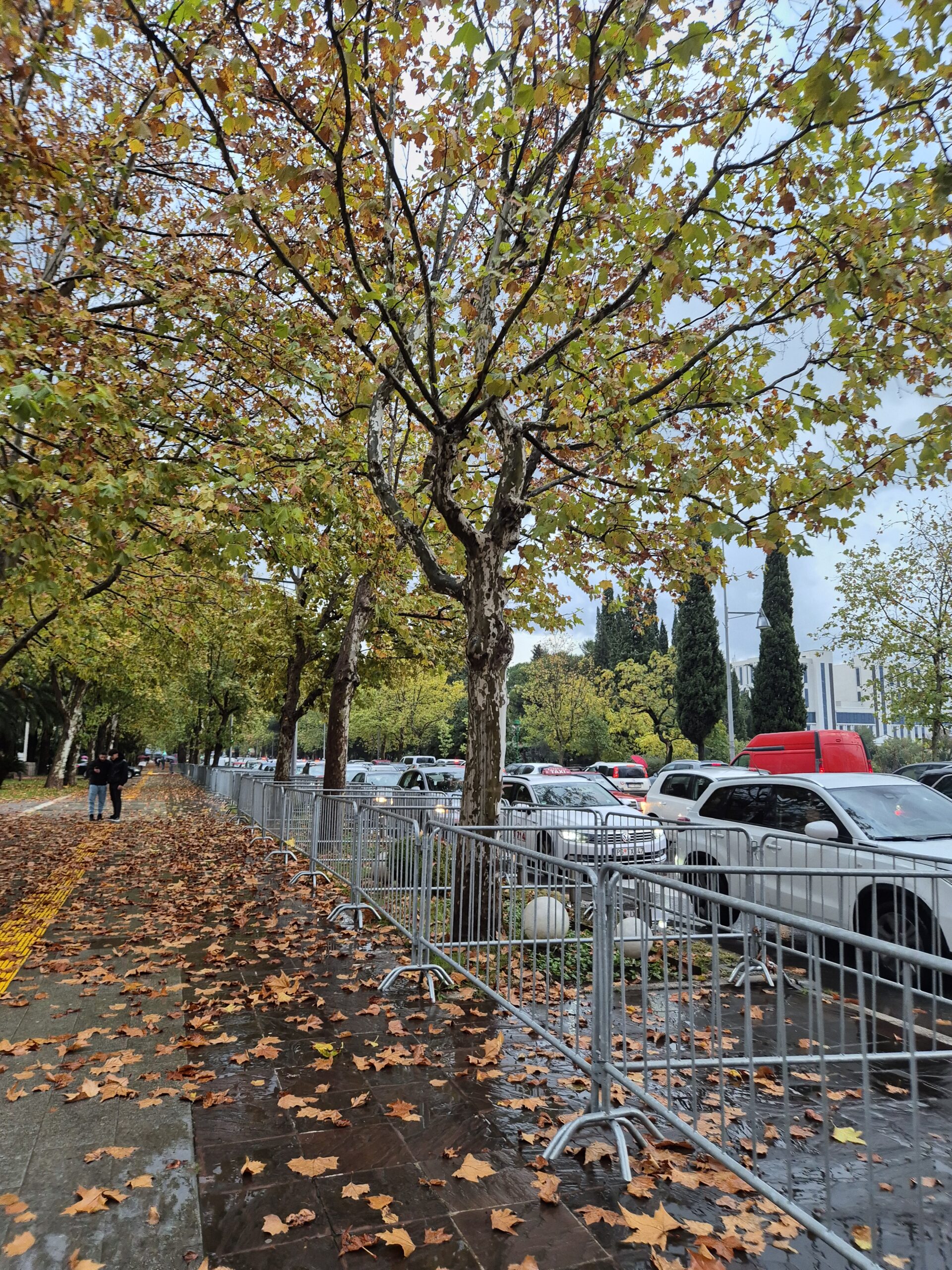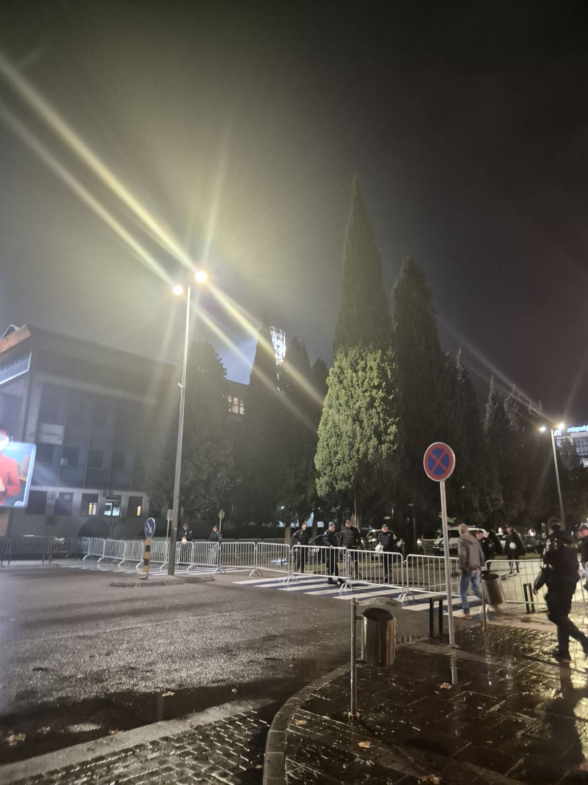 Duž čitave zone postavljene su zaštitne ograde, a prisustvo policije pod punom opremom posebno je primjetno u blizini ulaza na stadion.