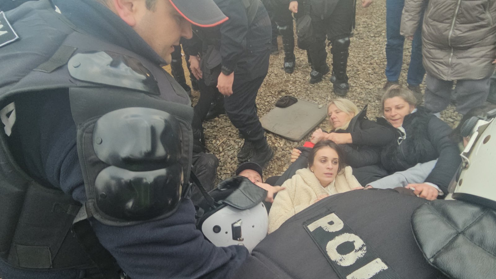 Situacija u Botunu je teška, među okupljenim mještanima ima i žena koje odbijaju da se sklone, a njih tijelom štiti Milan Knežević, kako ih policija ne bi privela.