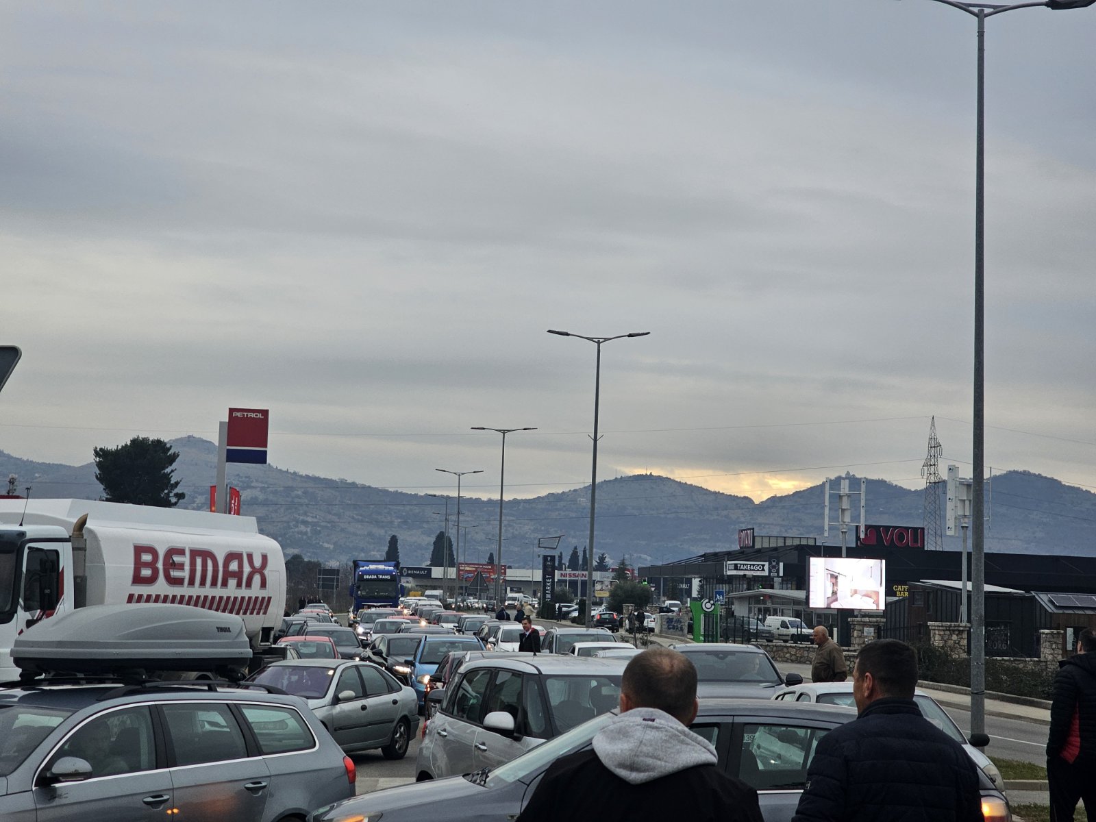 Kako javlja reporterka portala Standard, kilometarske kolone formirane su sa sve tri strane.Podsjećamo, blokada na Zabjelu počela je u 14 časova i trajala je 30 minuta.