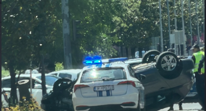 Vozilo se, iz još uvijek ne utvrđenih razloga, prevrnulo i završilo na krovu.