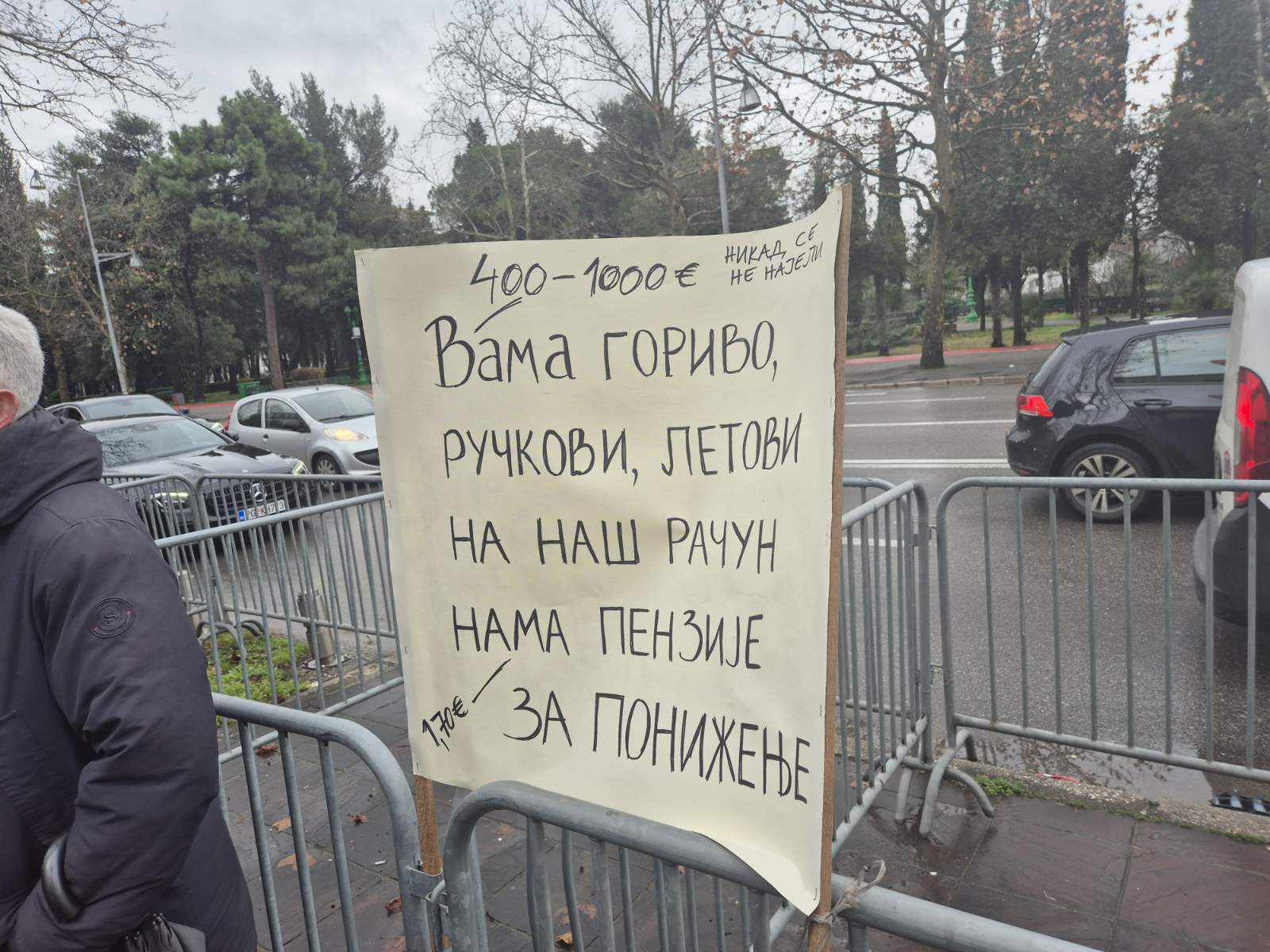 Penzioneri su se okupili danas ispred Skupštine Crne Gore zbog sve težih životnih uslova i simboličnih povećanja penzija koja, kako kažu, ne prate rast cijena hrane, lijekova i komunalija.