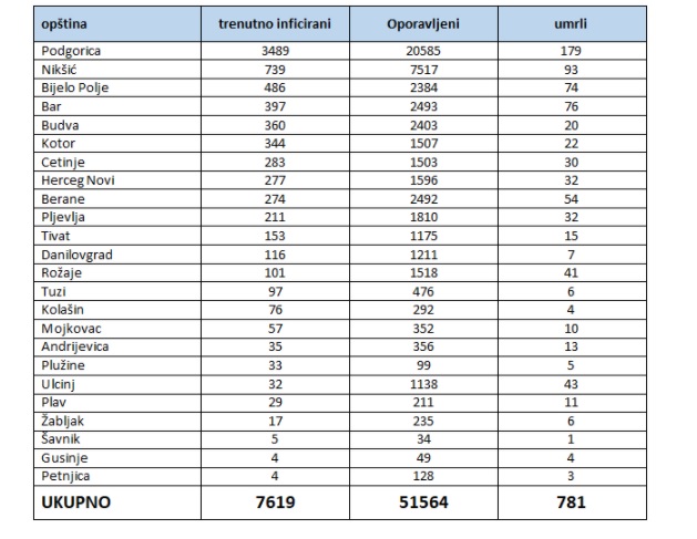 Ipak, na pitanje iz kog razloga se u izvještaju Instituta o presjeku stanja, od početka februara, više ne nalazi tabela sa brojem oporavljenih i preminulih slučajeva po opštinama, te gdje se ti podaci mogu naći, nismo dobili odgovor.