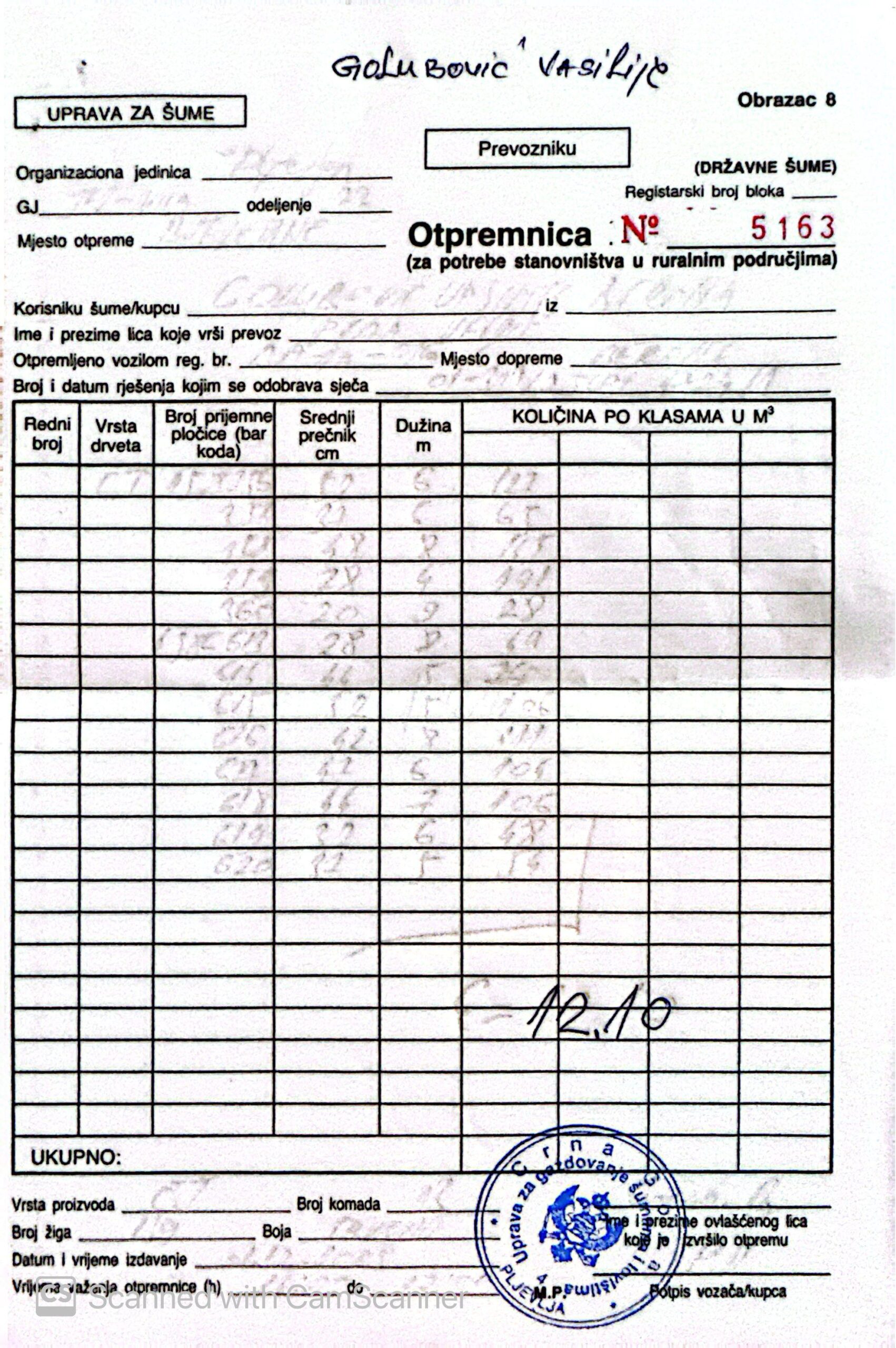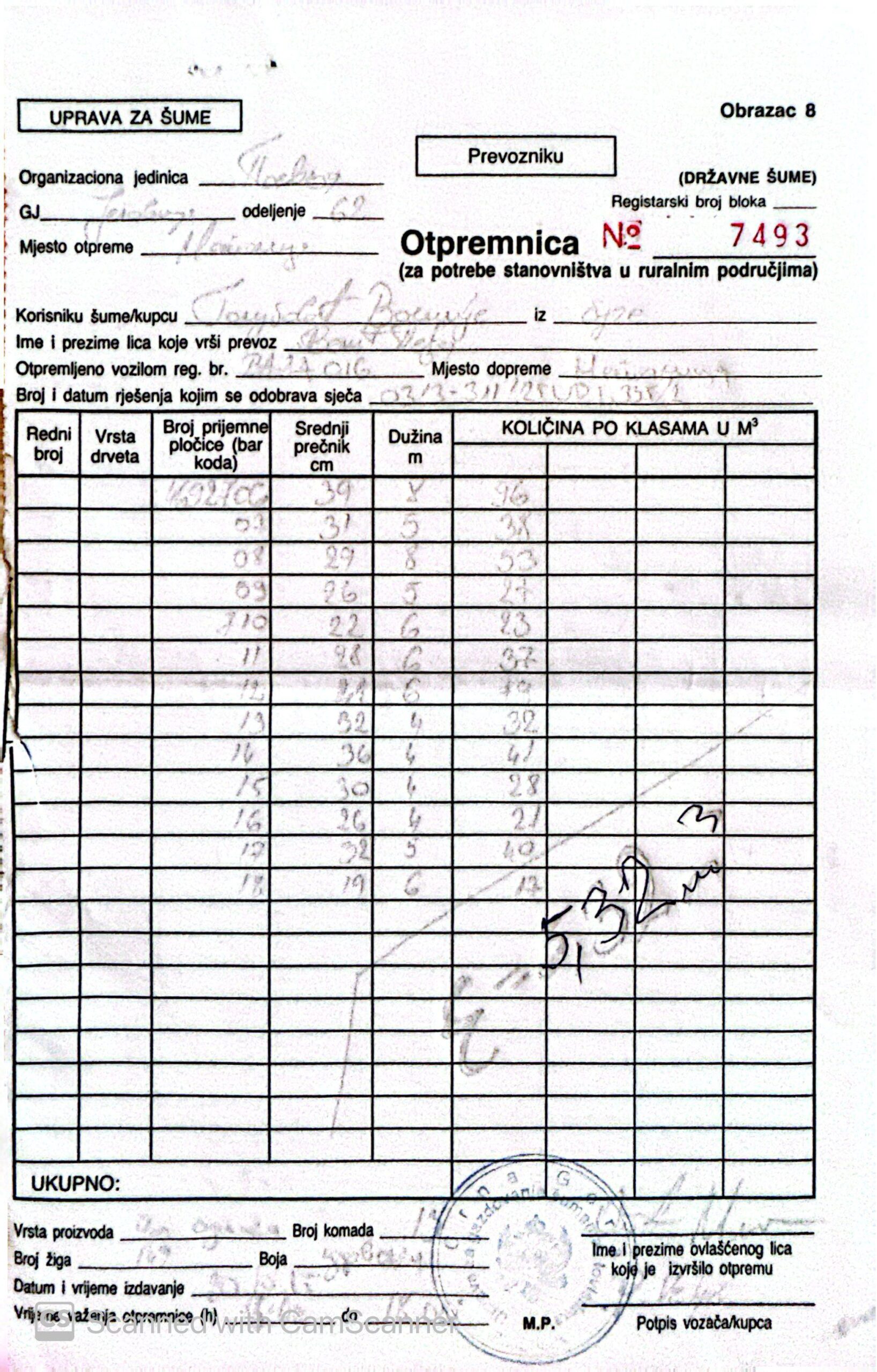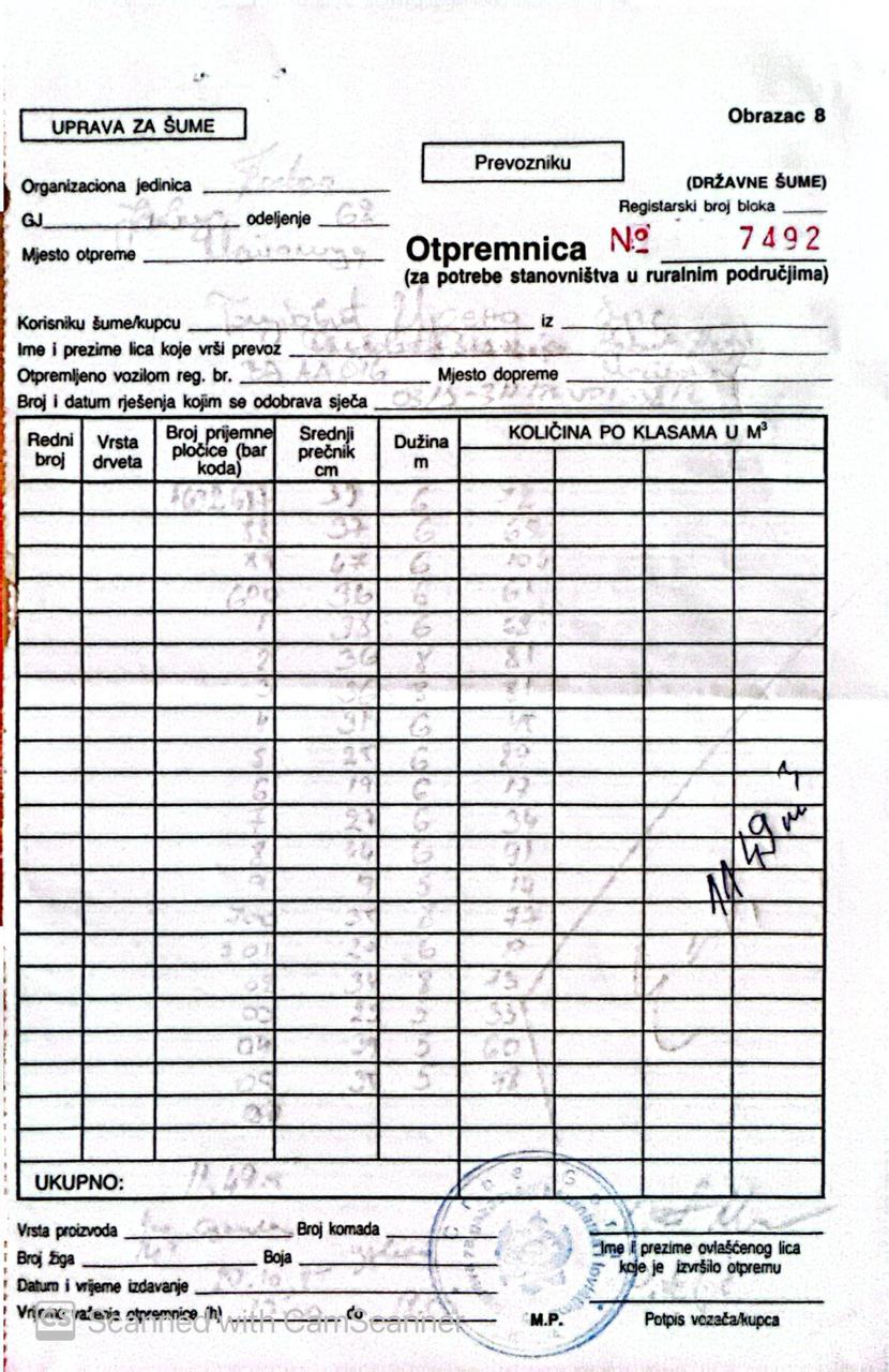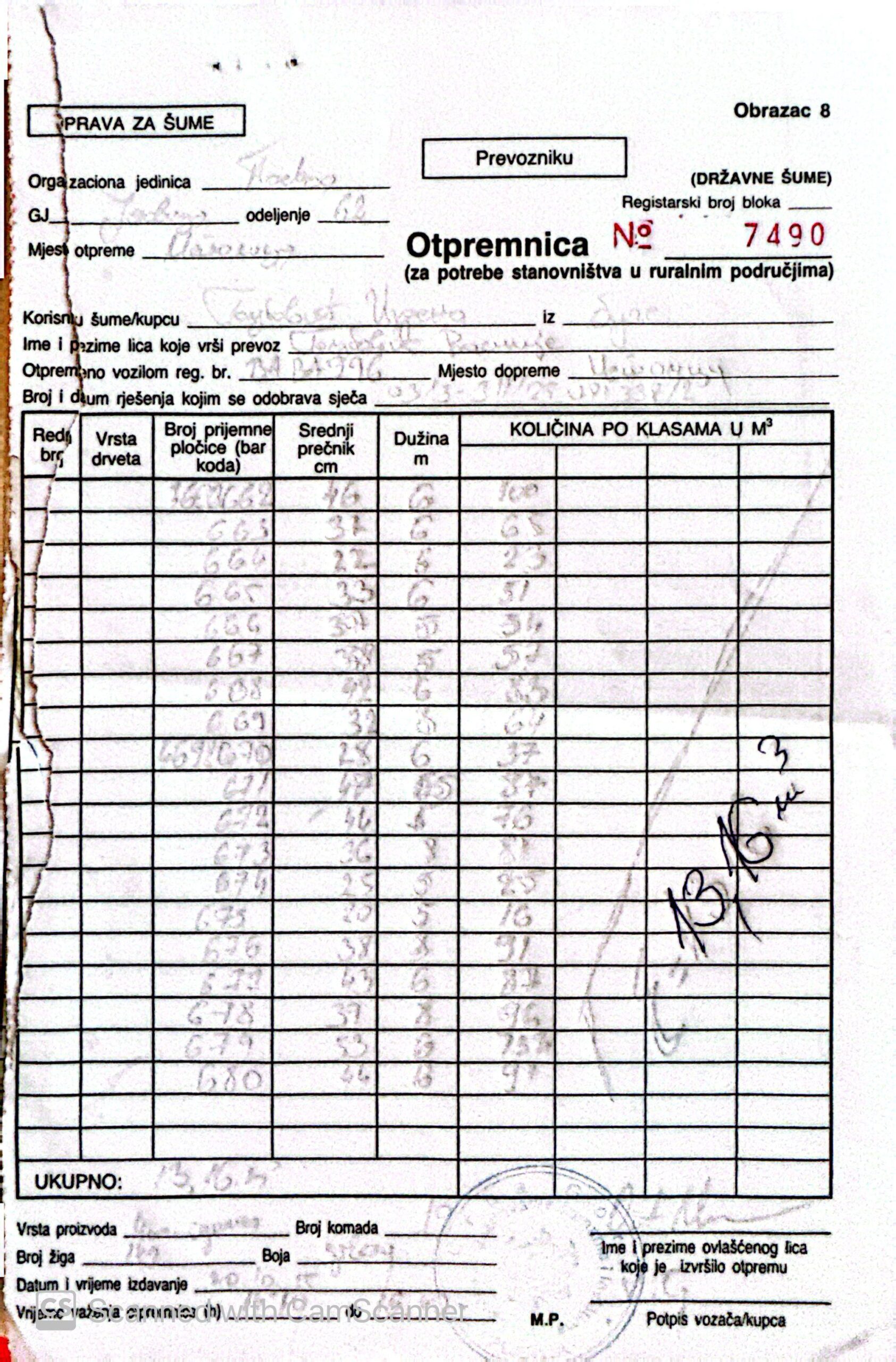 JELOVICA, ODJELJENJE 61A, A NA OTPREMNICI FALI RJEŠENJE