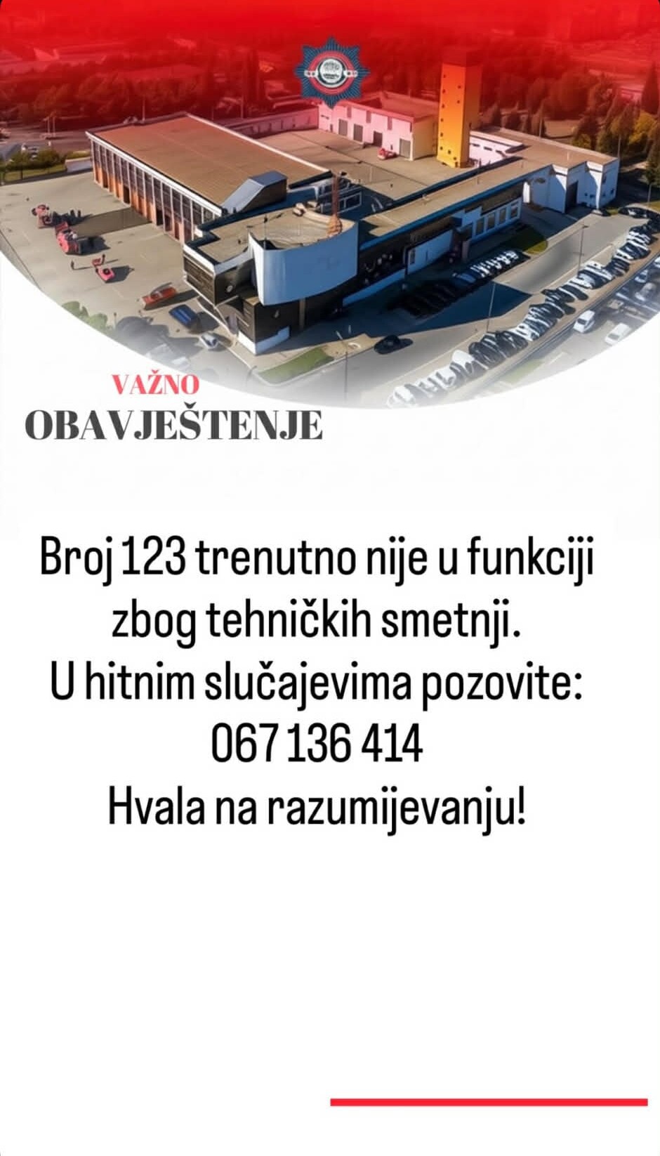 Kako su napisali na društvenim mrežama, broj je van funkcije zbog tehničkih smetnji.