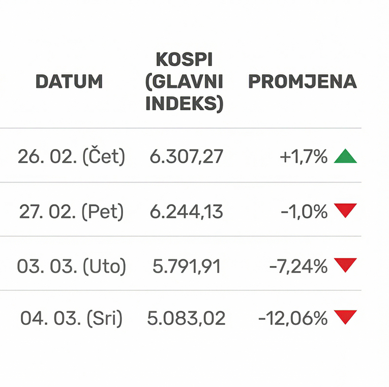 Odluka Irana o zatvaranju Hormuškog moreuza izazvala je paniku na azijskim tržištima. Južna Koreja, kao energetski zavisna ekonomija, prva je osjetila udar zbog straha od potpunog prekida snabdijevanja naftom.Seul bilježi najveći pad u istoriji