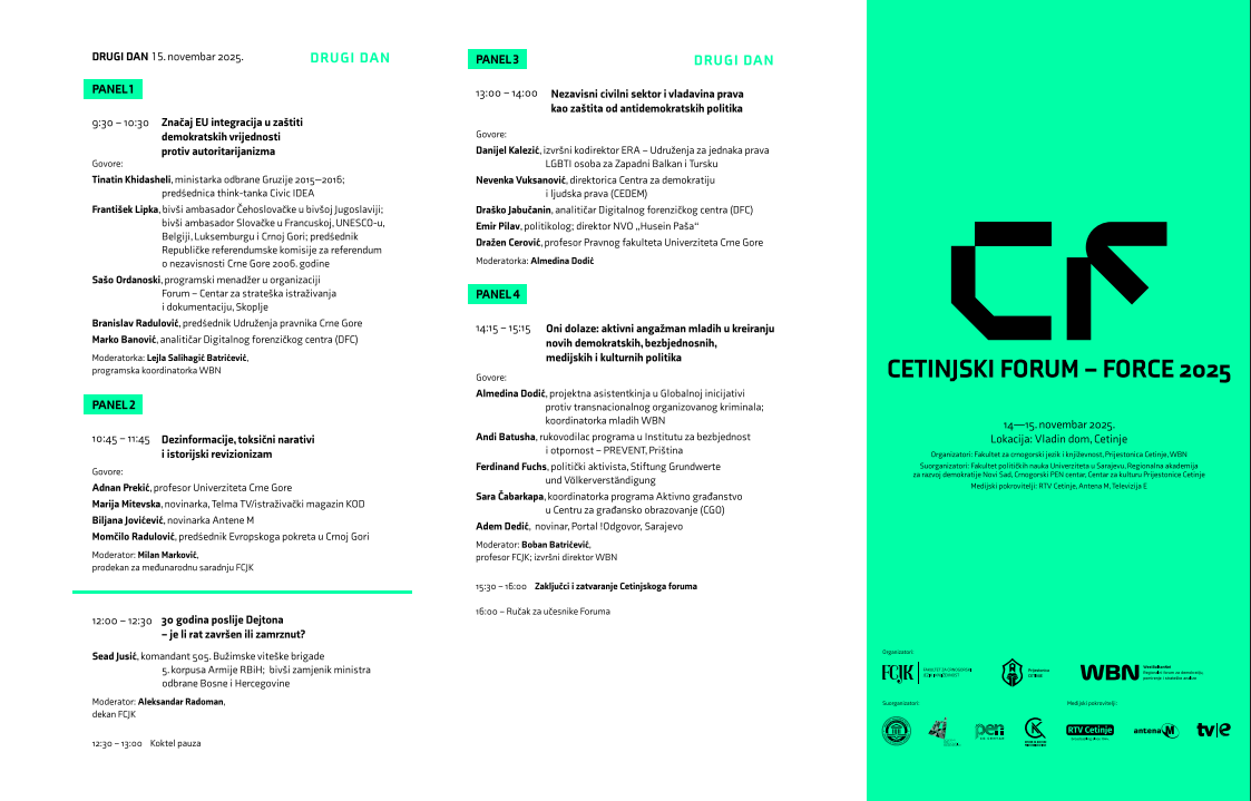 Cetinjski forum iz godine u godinu prerasta u jednu od najvažnijih platformi za dijalog o demokratskim procesima na Zapadnom Balkanu, povezujući aktere iz akademske, političke i civilne sfere.