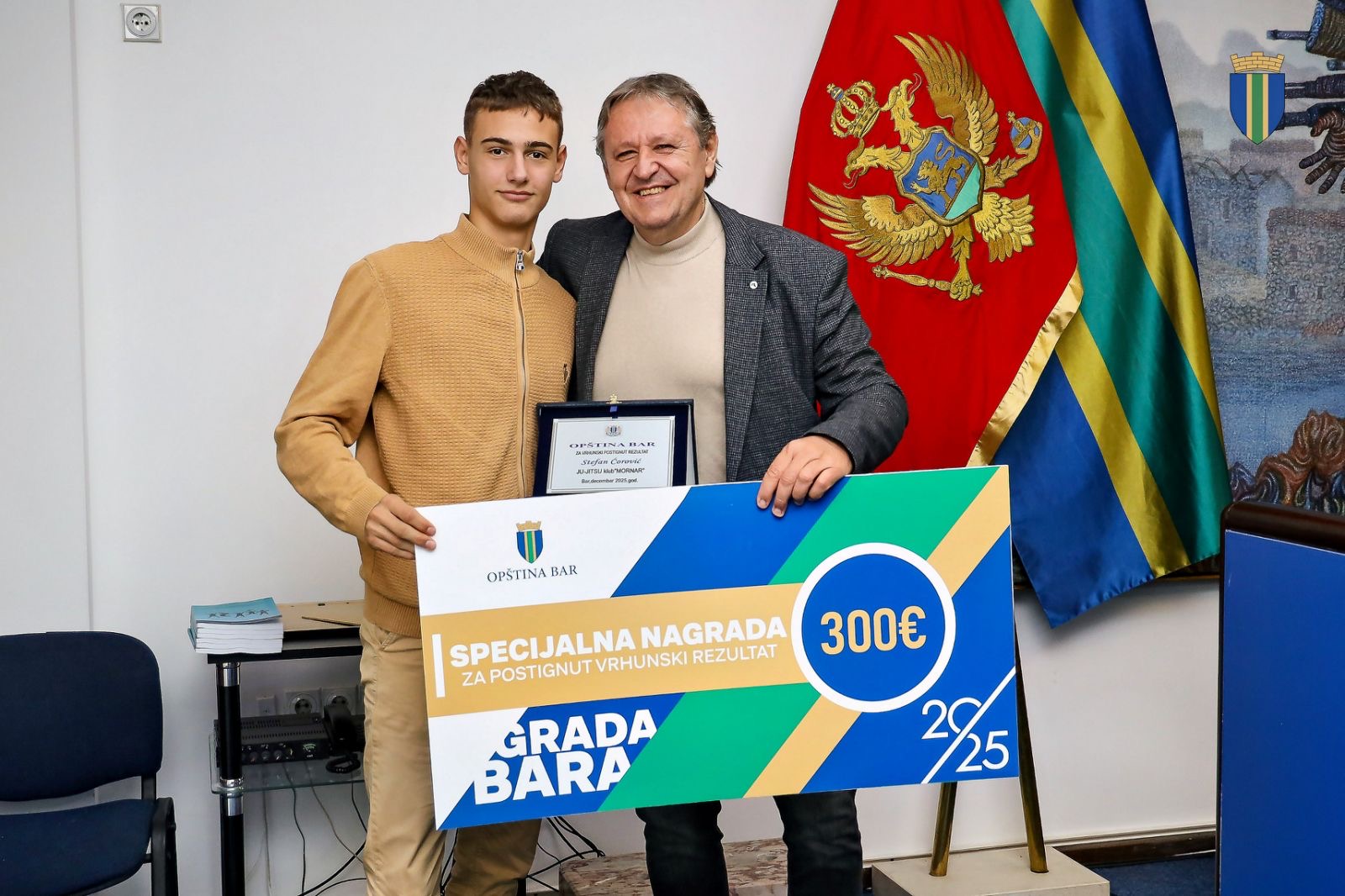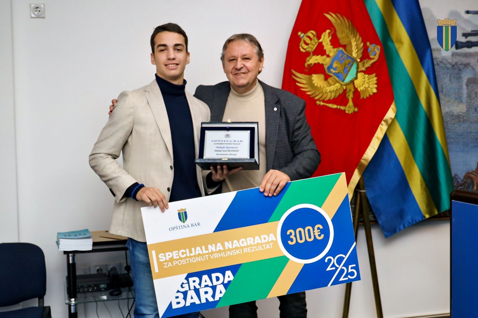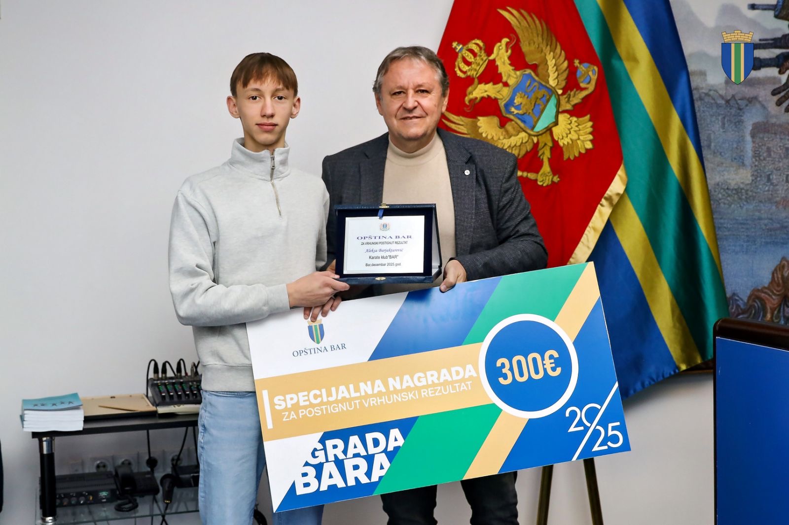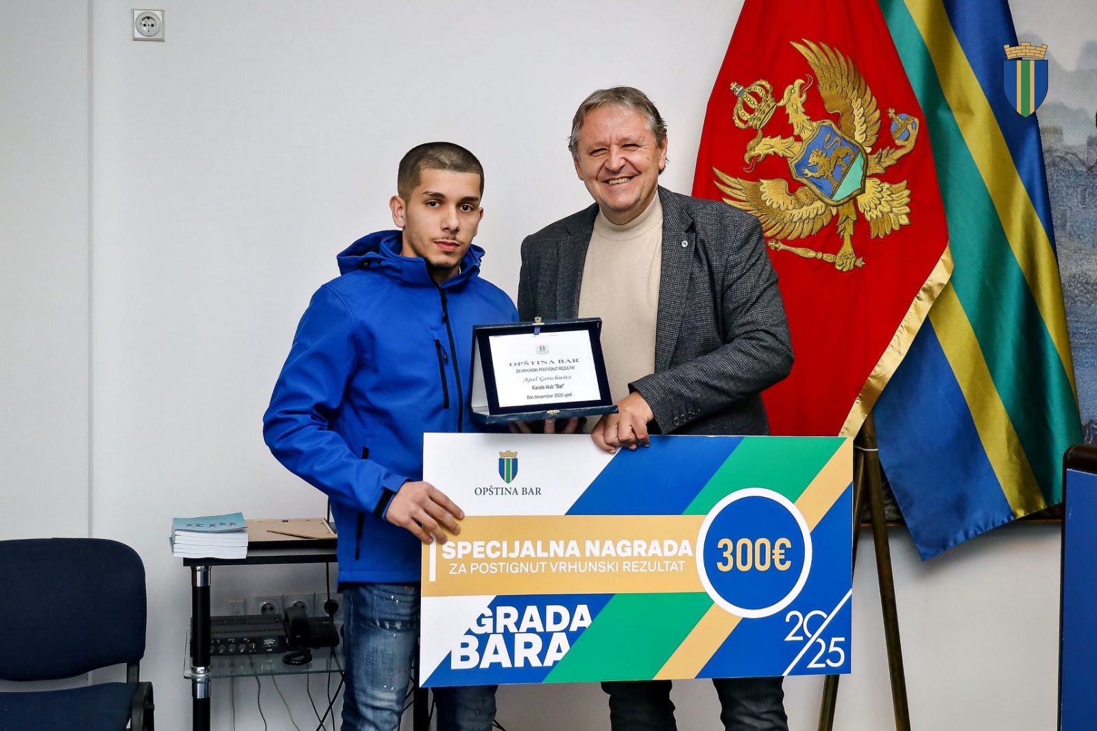 Titula najboljeg sportiste grada Bara u 2025. godini pripala je Vladimiru Mijaču, članu Karate kluba “Bar” koji je na ovogodišnjem evropskom seniorskom prvenstvu Baru i Crnoj Gori donio istorijsku bronzanu medalju u katama pojedinačno.