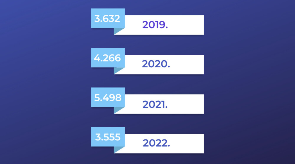 Kako su saopštili, u 2020-oj taj broj je iznosio 4266, a u 2021-oj 5498, dok 2022. godina broji nemali pad broja odbačaja, sa brojkom od 3555, koji prekida tendenciju rasta.