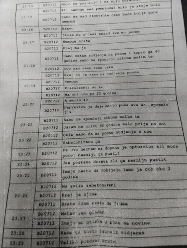 Na dokumentu koji je predala advokatica Sudu nalaze se dvije šifre i pored njih imena koja portal Dan neće objavljivati, ostavljajući prostora za čekanje odgovora od nadležnih institucija. Naznačeno je da je komunikacija iz 2020. godine.Advokatica Karadžić očekuje da će nadležne institiucije da reaguju i da će SDT, policija i sud da preduzmu ranje provjere iz svoje nadležnosti.