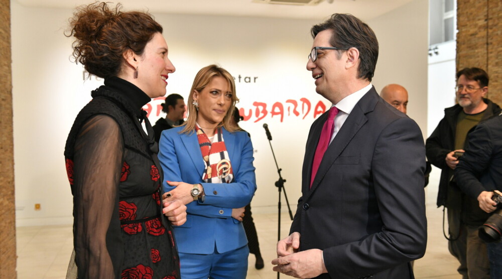 Na otvaranju izložbe govorila je i ministarka kulture Republike Sjeverne Makedonije Bisera Kostadinovska-Stojčevska, direktorica Muzeja savremene umjetnosti u Skoplju Mira Gakjina Ivanovska, ambasadorka Crne Gore i Republici Sjevernoj Makedoniji Marija Petrović.