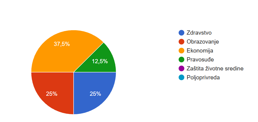 Najveći procenat građana, njih 37,5 odsto, stava je da bi od svih oblasti (zdravstvo, obrazovanje, ekonomija, pravosuđe, zaštita životne sredine, poljoprivreda) – ekonomija imala najviše koristi od članstva u EU.