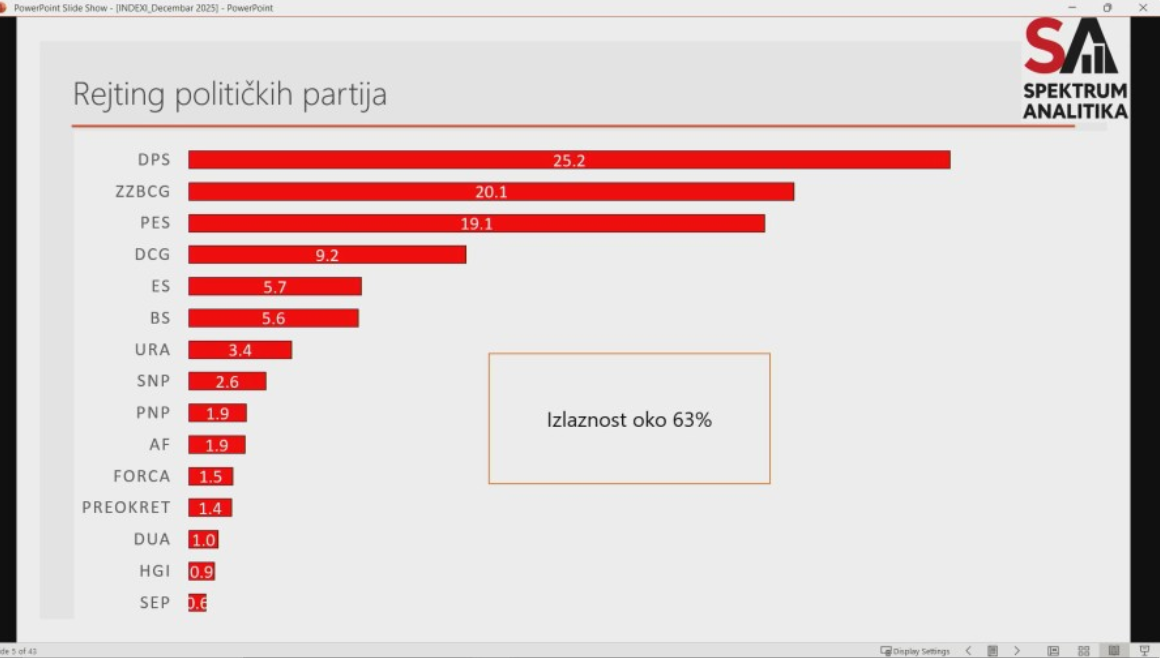 Istraživanje, čije je rezultate Bešić predstavio na RTCG, govori kako Demokratska partija socijalista ima podršku 25,2 odsto.