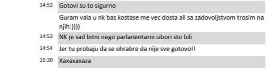 „Iz NSD se trude da zaborave, kako ih je Boban Baćović, drugi čovjek škaljarskog klana, po sopstvenom priznanju finansirao u susret prethodnim lokalnim izborima u Nikšiću. Zato bi, prije nego što otvore temu kriminala trebalo da budu malo oprezniji jer – ko zna, javnost bi možda mogla da ugleda i neke nove prepiske u kojima Baćović za aktuelnog predsjednika opštine Marka Kovačevića kaže kako je on ,,njihovo dete” i kako mu treba pomoći sve što treba”, navode iz DPS-a.