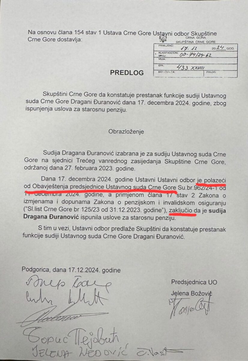 “Ustavni sud bi, u cilju zaštite svoje ustavne funkcije morao hitno održati sjednicu i decidno se odrediti da li je skupštinski Odbor, kao tijelo Skupštine, uzurpirao nadležnosti Ustavnog suda iz čl. 154 stav 3 Ustava Crne Gore i člana 7 stav 2 Zakona o Ustavnom sudu”, saopštio je Radulović