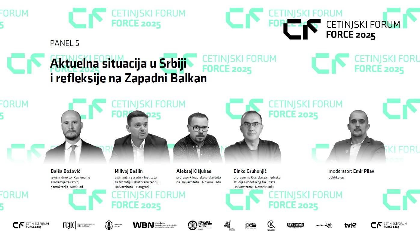 Govoreći na petom panelu, izvršni direktor Regionalne akademije za razvoj demokratije, Novi Sad, Balša Božović, kazao je da u Srbiji u posljednjih 13 godina nema ništa evropsko.