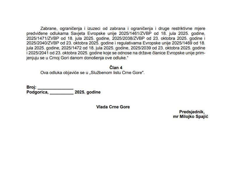 Vlada je 8. decembra 2025. godine, u skladu s članom 10 Uredbe o Vladi, bez održavanja sjednice, na osnovu pribavljene saglasnosti većine članova Vlade, odlučila o više predloga.