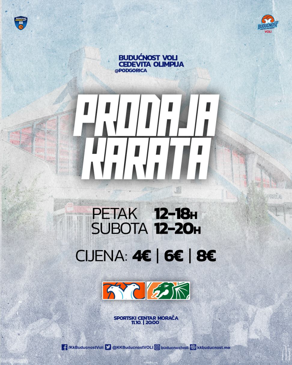 Karte se mogu kupiti na biletarnici „Mtel dvorane Morača“ u petak od 12 do 18 časova, kao i u subotu od 12 časova do početka utakmice, po cijenama od 4, 6 i 8 eura.