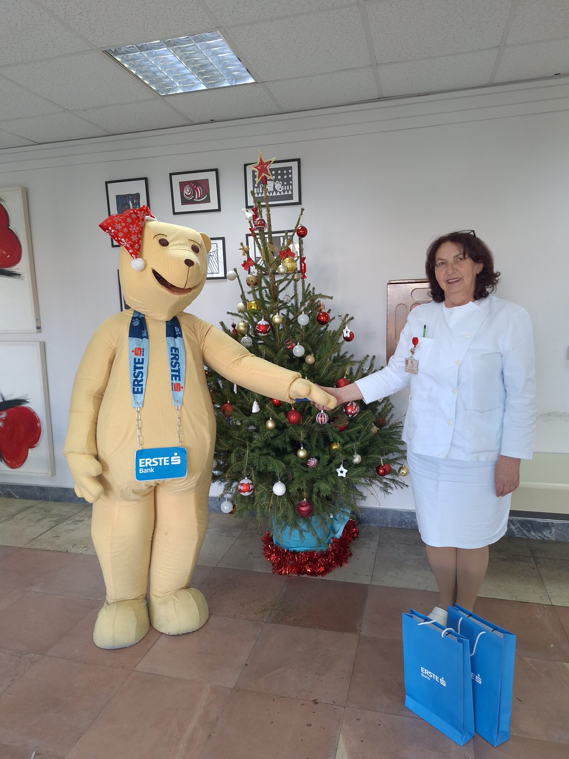 „Decembar je u Erste banci već godinama sinonim za jednu posebnu tradiciju – Erste dobrotvorni doručak, kada prikupljamo donacije za one kojima želimo uljepšati praznike. Ove godine smo sakupili rekordan iznos donacija. Naše kolege su jednoglasno odlučile da prioritet bude osmijeh na licima djece koja će Novu godinu dočekati u Institutu za bolesti djece Kliničkog centra Crne Gore. Ostatak donacije usmjeravamo na program obrazovne podrške za djecu iz manje razvijenih sredina, jer vjerujemo da je znanje najbolji poklon za budućnost“, rekla je Anja Vukoslavović iz Službe komunikacija u Erste banci.„Zahvaljujemo što ste se sjetili Instituta za bolesti djece i mališana koji će Novu godinu dočekati kod nas. Medo Štedo im je izmamio osmijehe na licima, a pokloni su unijeli radost i veselje. U ime sve djece, hvala zaposlenima Erste banke na pažnji i i humanom gestu“, kazala je Vesna Tiodorović, glavna sestraInstituta za bolesti djeceKliničkog centra Crne Gore.