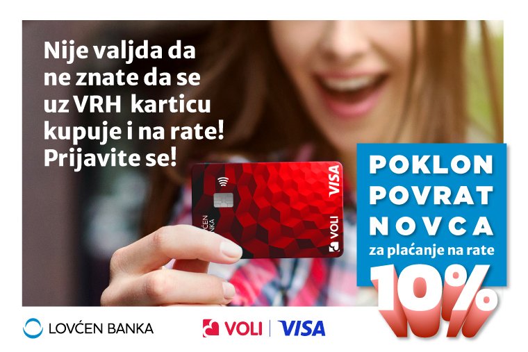 Pozivamo sve korisnike Visa Vrh kartice da se, ukoliko to još nisu učinili, u bilo kojoj od filijala Lovćen banke prijave za odobrenje limita za kupovinu na rate.