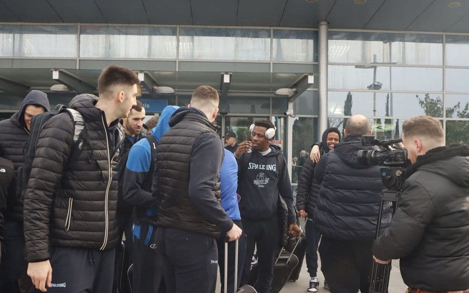Uz baklje i pjesmu, navijači su pozdravili košarkaše i stručni štab.