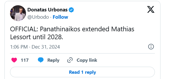 Lesor je doživio tešku povredu koljena i biće van terena minimum četiri mjeseca, ali to nije bio problem za čelnike kluba iz Atine.