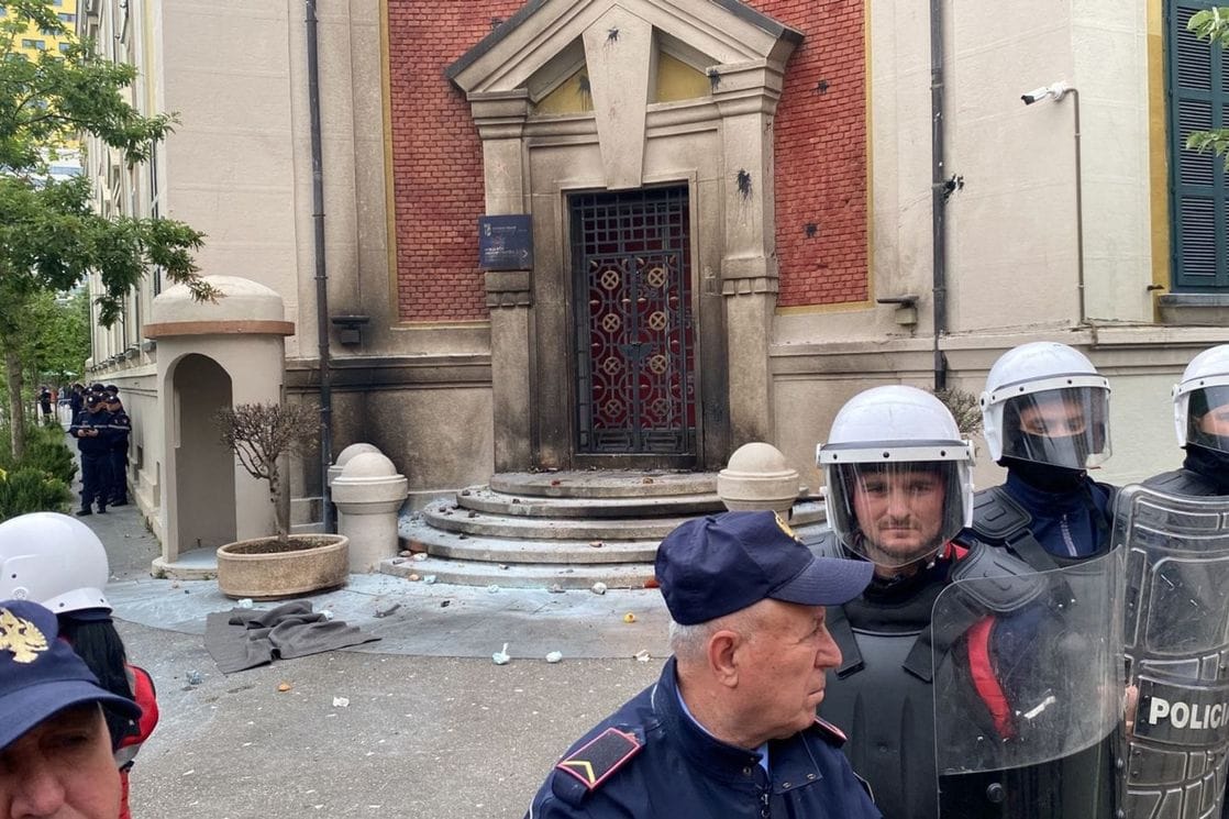 U jednom momentu, neko iz mase bacio je Molotovljev koktel nakon kojeg su gorjela vrata ulaza u zgradu opštine Tirana.Policija je morala da interveniše, kako demonstranti ne bi upali u zgradu.