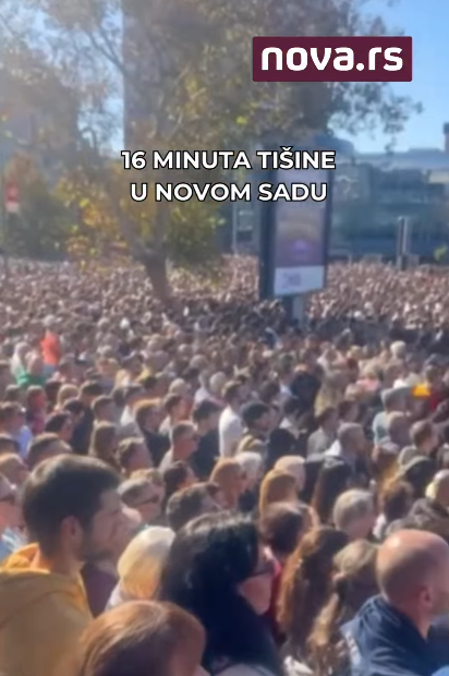 Hiljade građana okupljenih u Novom Sadu na godišnjicu pada nadstrešnice na Željeznčkoj stanici po drugi put danas sa 16 minuta tišine odaju počast žrtvama.