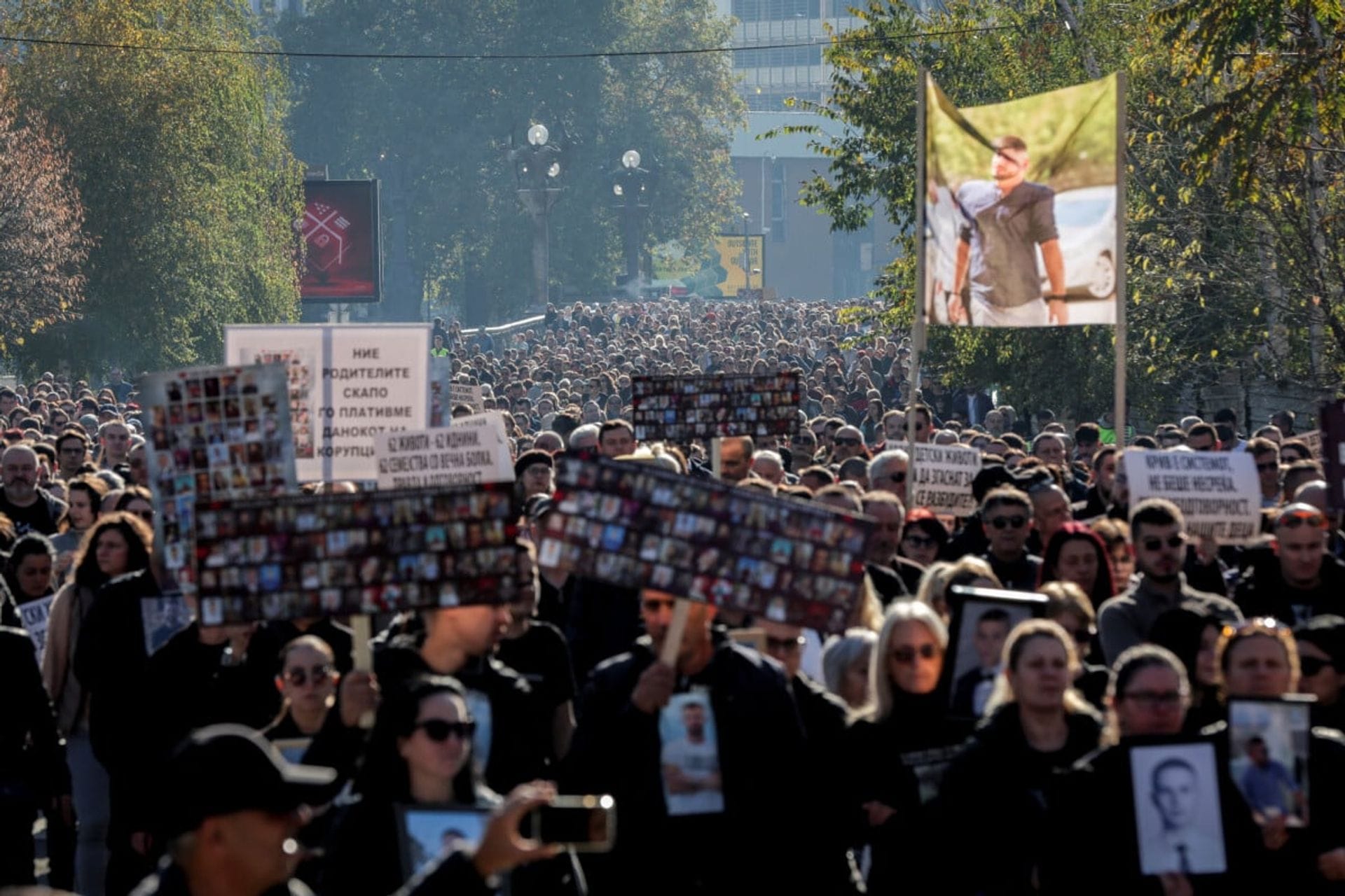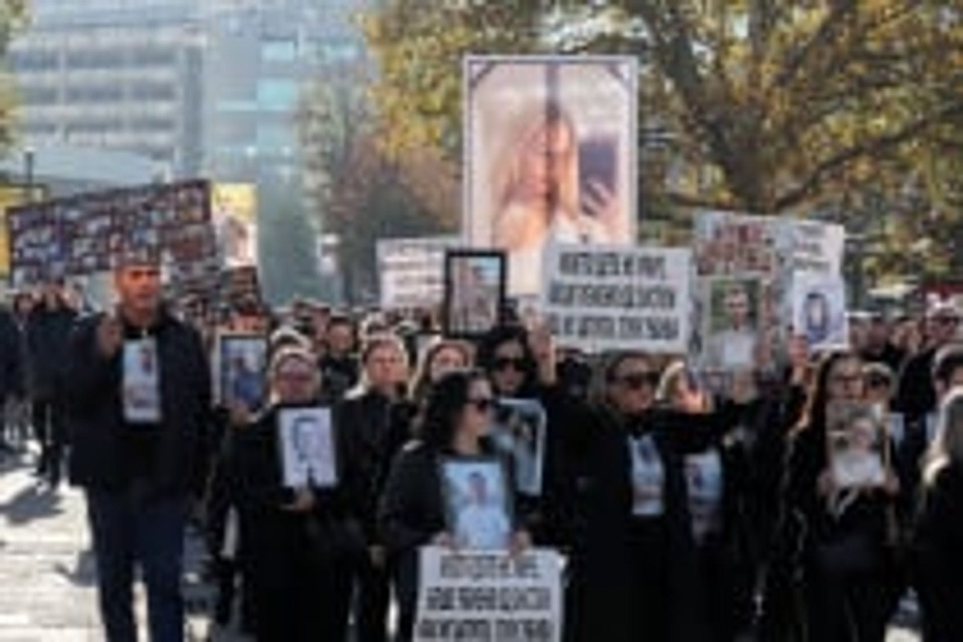 Demonstrante, koji su marširali do parlamenta, predvodila je rodbina poginulih koji su nosili ogroman transparent sa slikama žrtava na kojem je pisalo “63 sjene će vas pratiti”, prenosi Klix.ba.