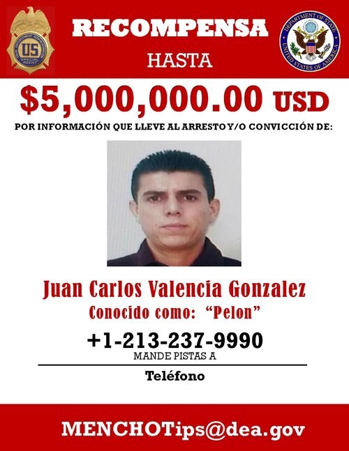 Prvo ime na popisu je Huan Carlos Valencia Gonzalez, poznat kao “El 03”. Riječ je o “El Menčovom” posinku i njegovom “prirodnom nasljedniku”, za kojim je DEA raspisala nagradu do 5 miliona dolara.
