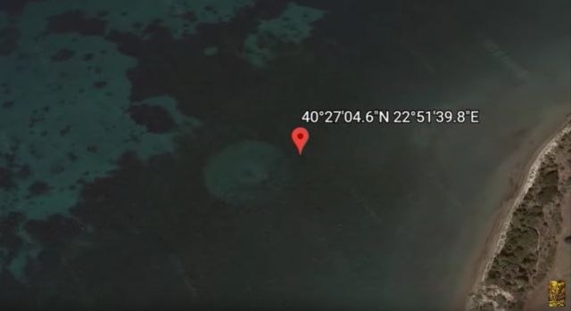 Kako se navodi ovaj okrugli objekat je kompletiran s manjima krugovima u svojoj unutrašnjosti i jasno se može vidjeti ispod površine mora, odnosno samo nekoliko metara od obale Mičanione, Solun.