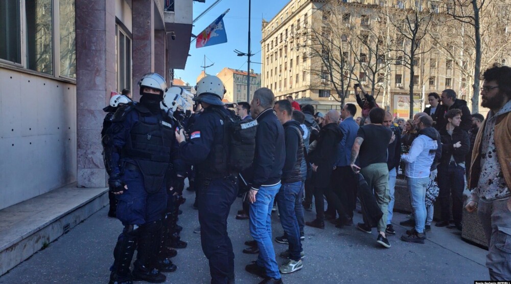 Agencija Beta je prenijela da je došlo i do fizičkog obračuna među okupljenima, a da su neki od njih navodno koristili sprejove i šok bombe.