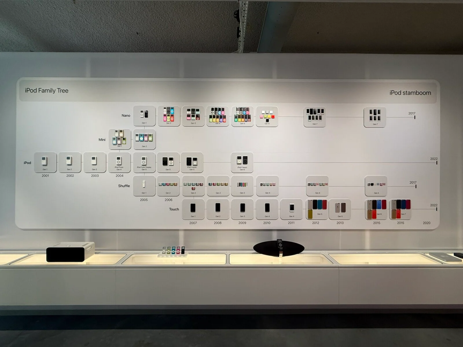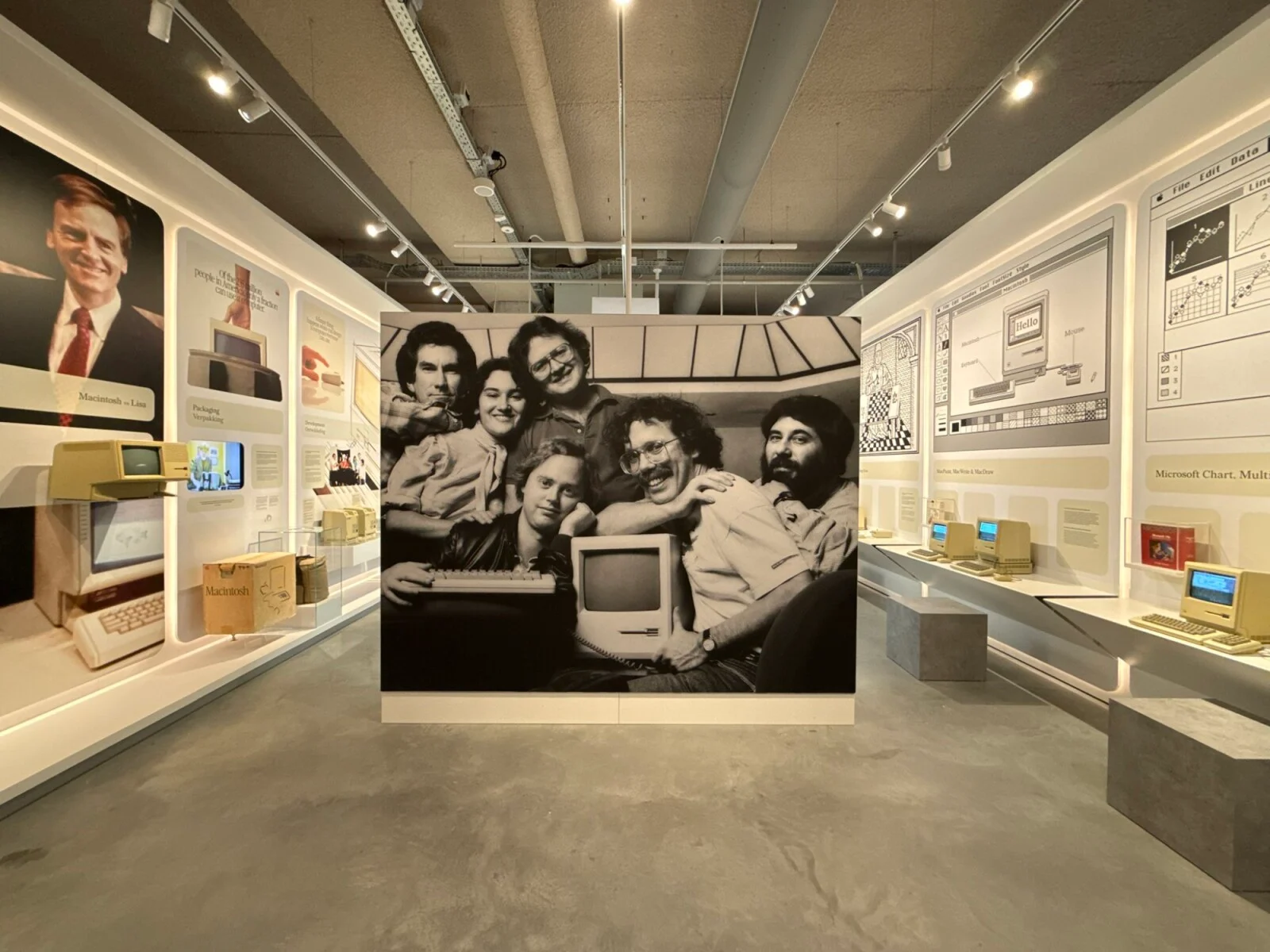 Tu je privlačan zid duginih boja s iMac G3 računarima, rekreacija garaže u kojoj su radili Steve Jobs i Steve Wozniak, izložba iPod-a i još mnogo toga.